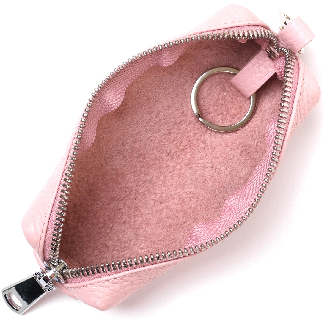 Отличная женская ключница от украинского производителя. Выполнена модель в нежном розовом цвете, имеет зернистую фактуру и очень мягкую кожу. Материал – натуральная кожа с улучшенными показателями прочности к износу. Внутри расположено металлическое кольцо для крепления ключей.