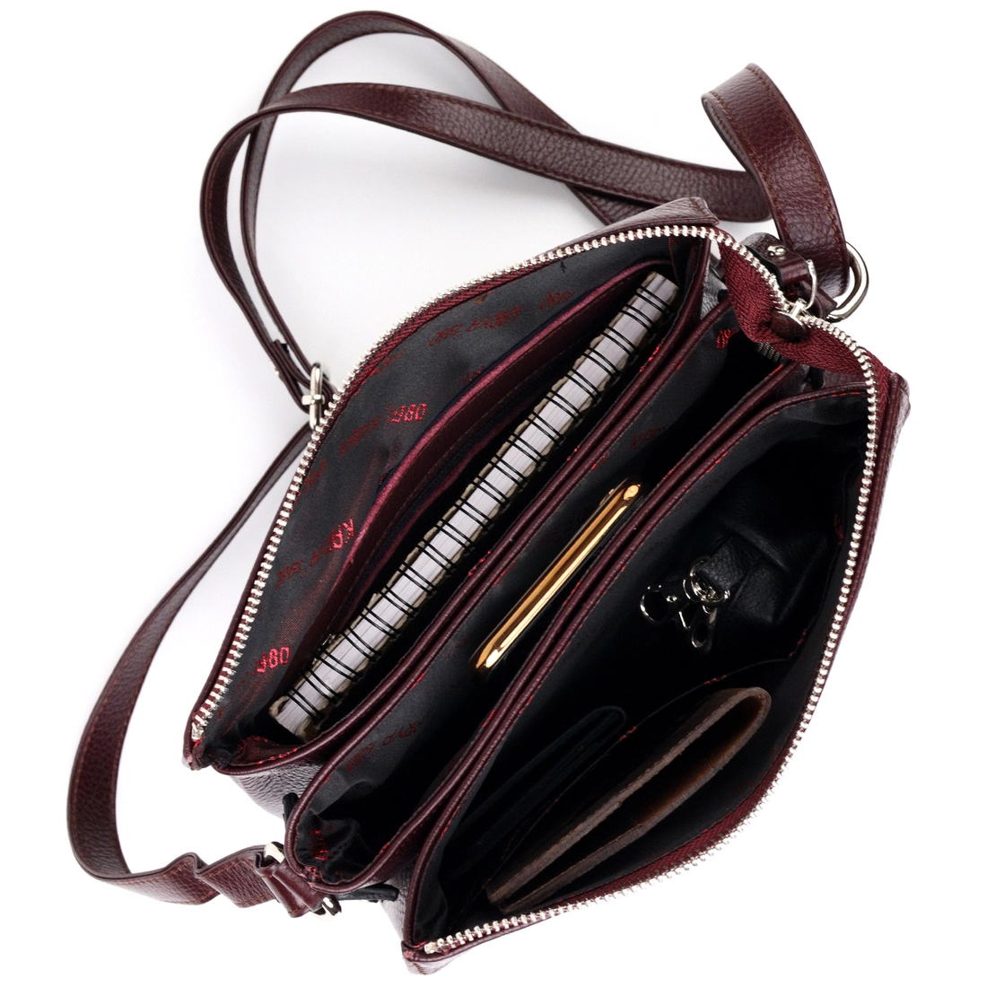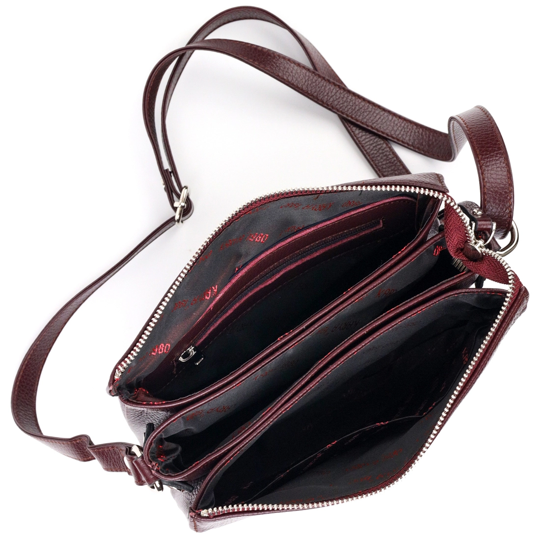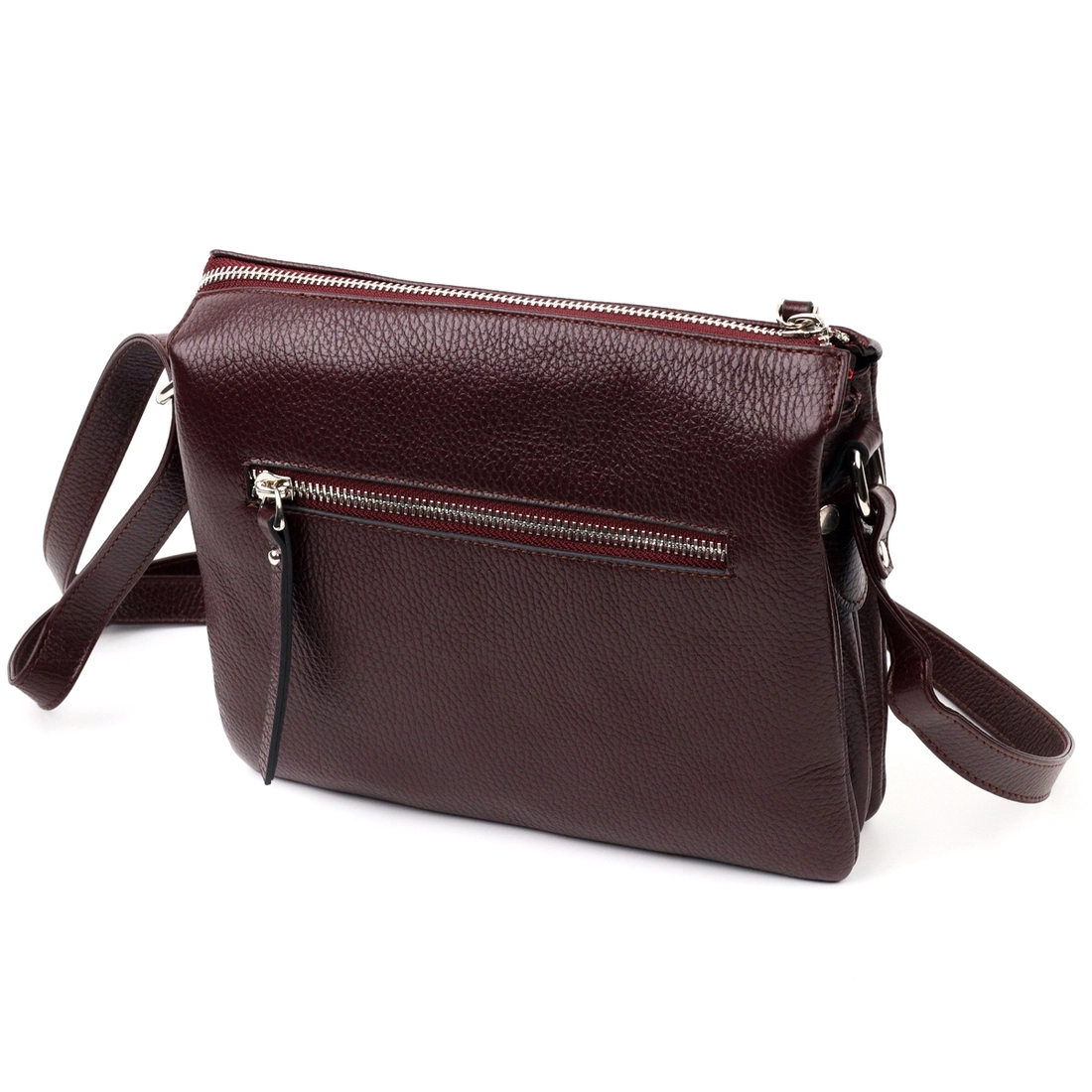 Женская компактная сумка небольшого размера из натуральной кожи, в красивом бордовом цвете. Фурнитура серебряного цвета. Сумку удобно носить на плече или через плечо. Сумка упакована в фирменный текстильный чехол Karya. Сумка из натуральной кожи всегда будет отличным подарком любой женщине.
