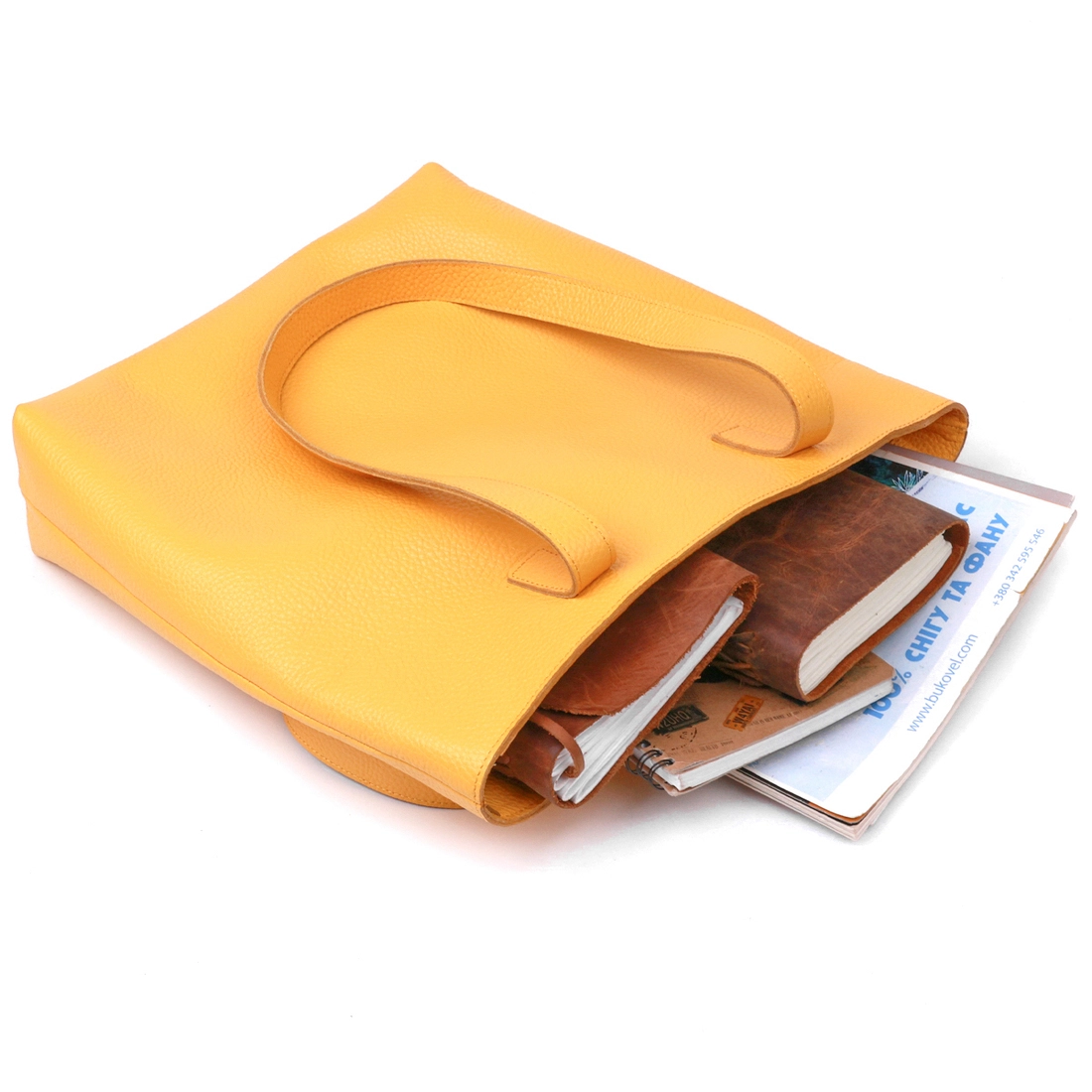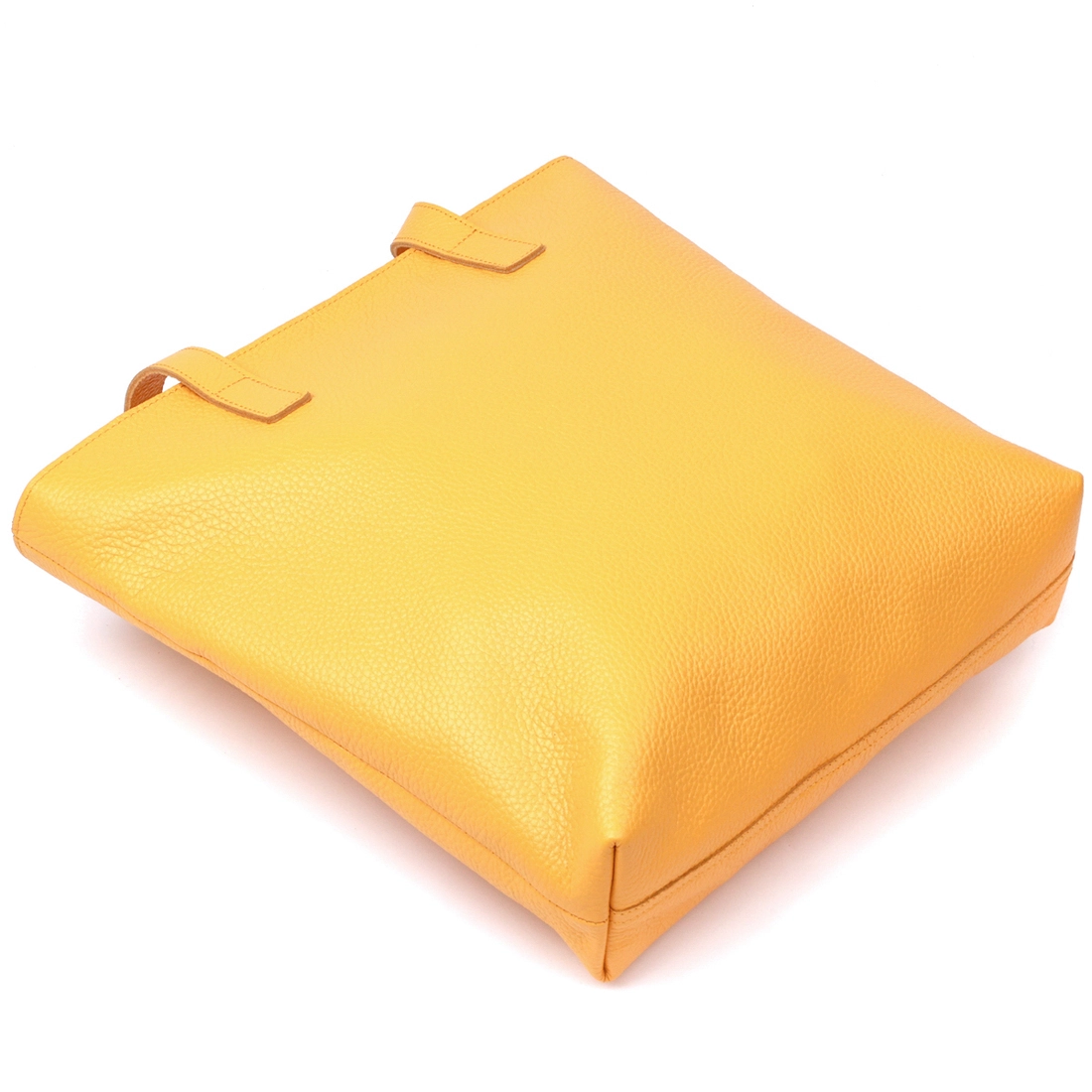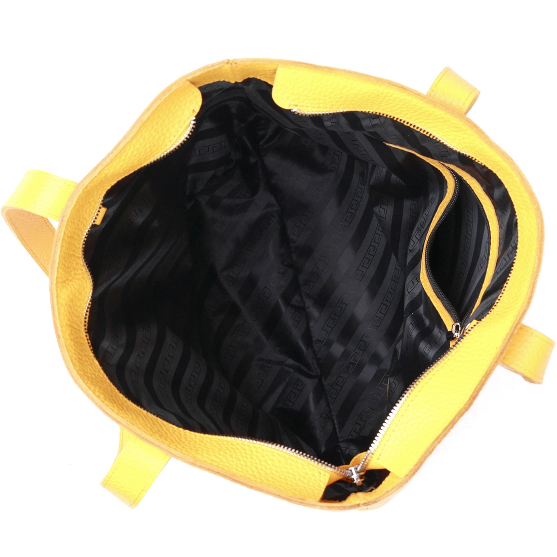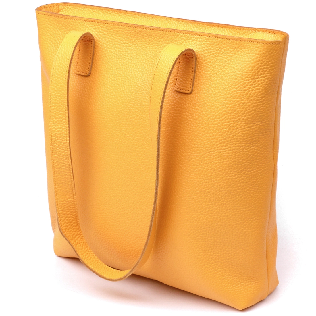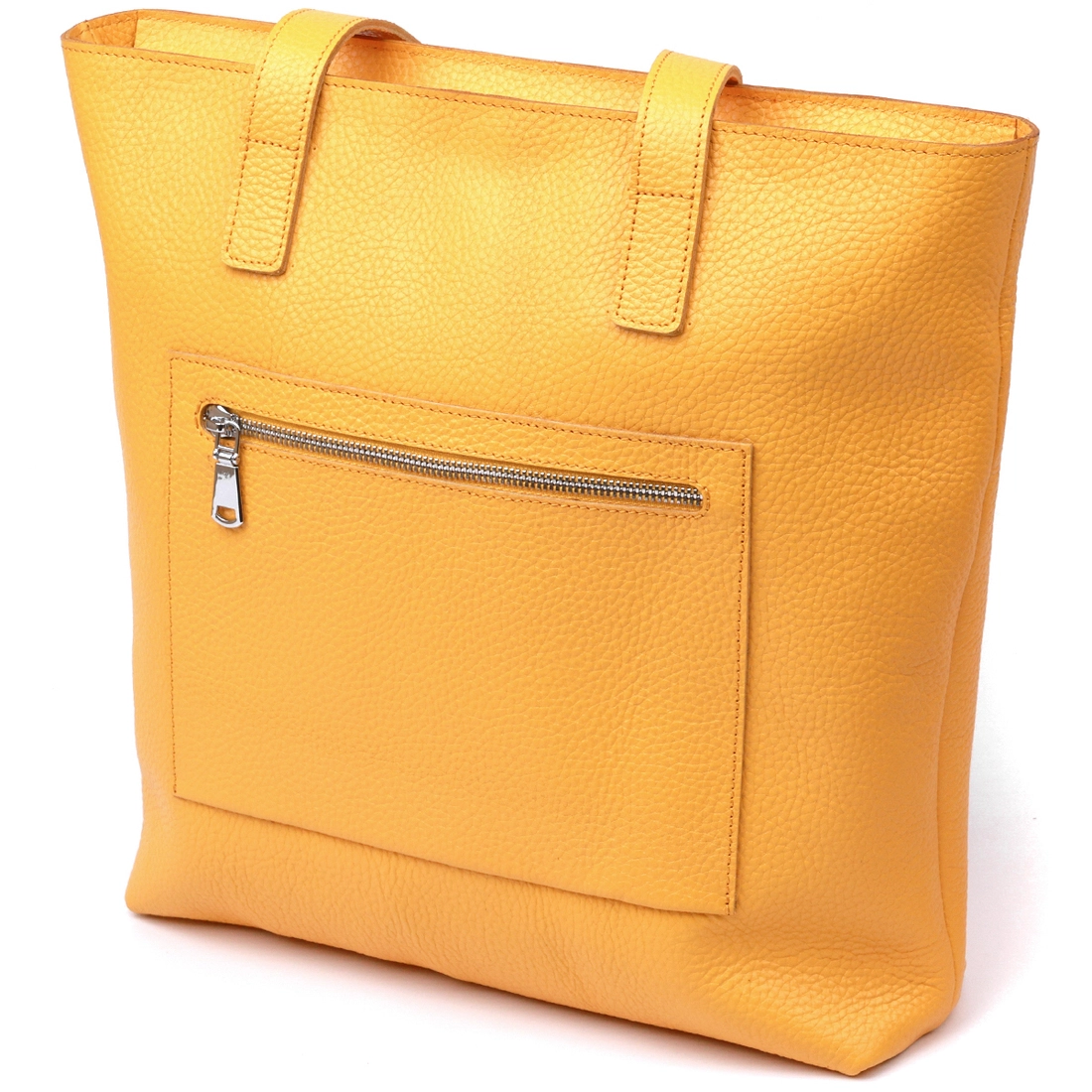Красивая женская сумка для шоппинга в стильном и лаконичном дизайне от украинского производителя. Выполнена данная модель из натуральной высококлассной кожи с отменными характеристиками. Внутри есть одно большое и вместительное отделение с потайным карманом, на внешней стороне – карман на молнии. Фактура сумки – зернистая, цвет – сочный желтый.