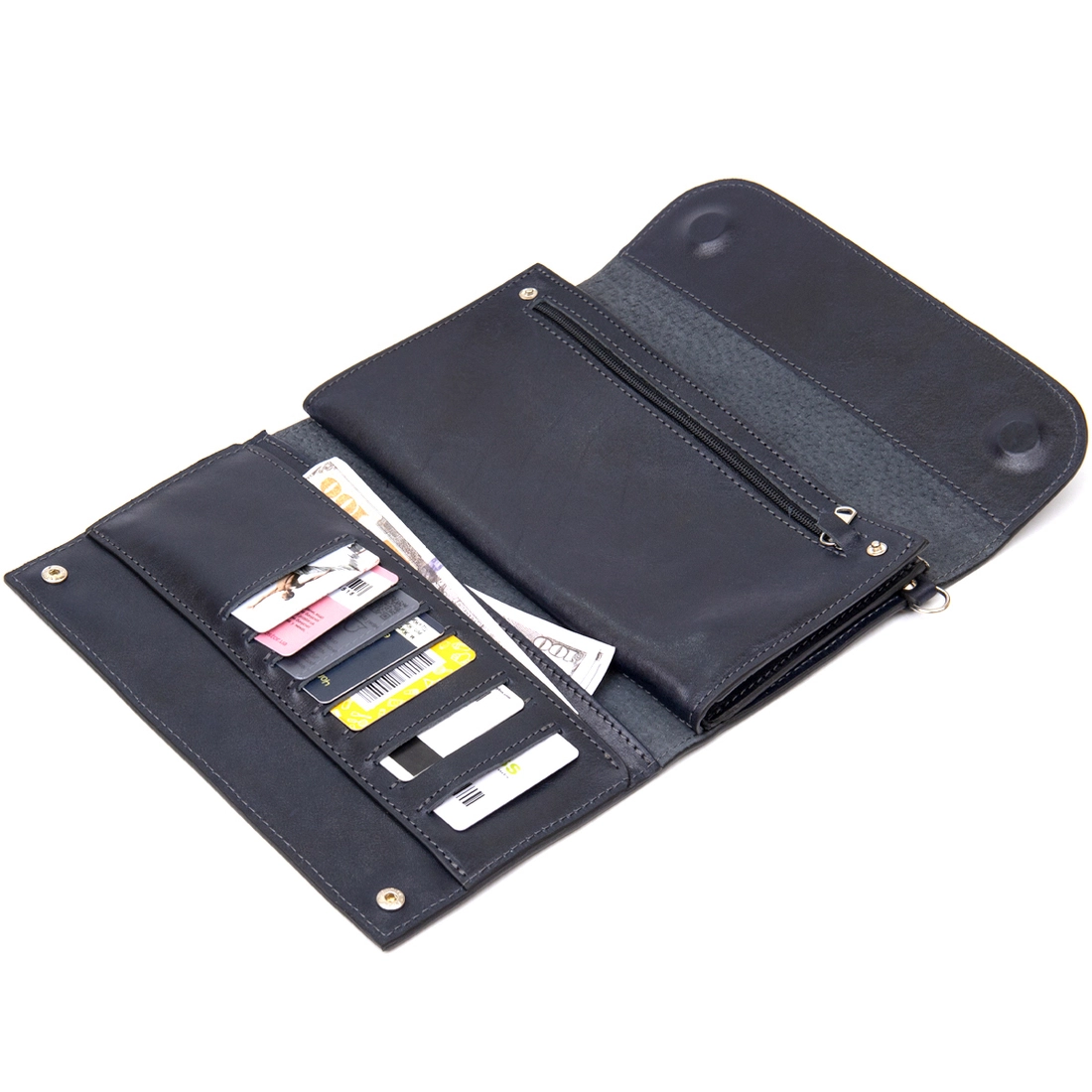 для купюр, мелочи, документов и кредитных карт, которые очень легко
