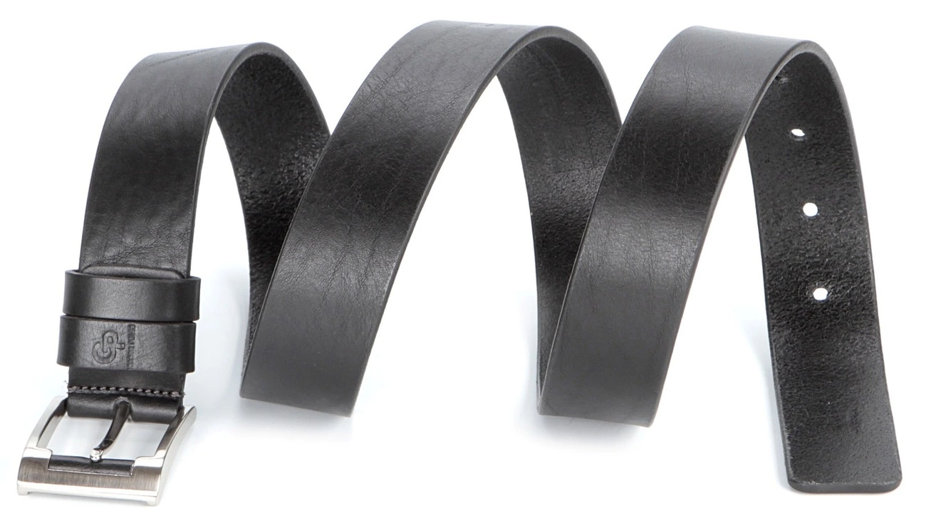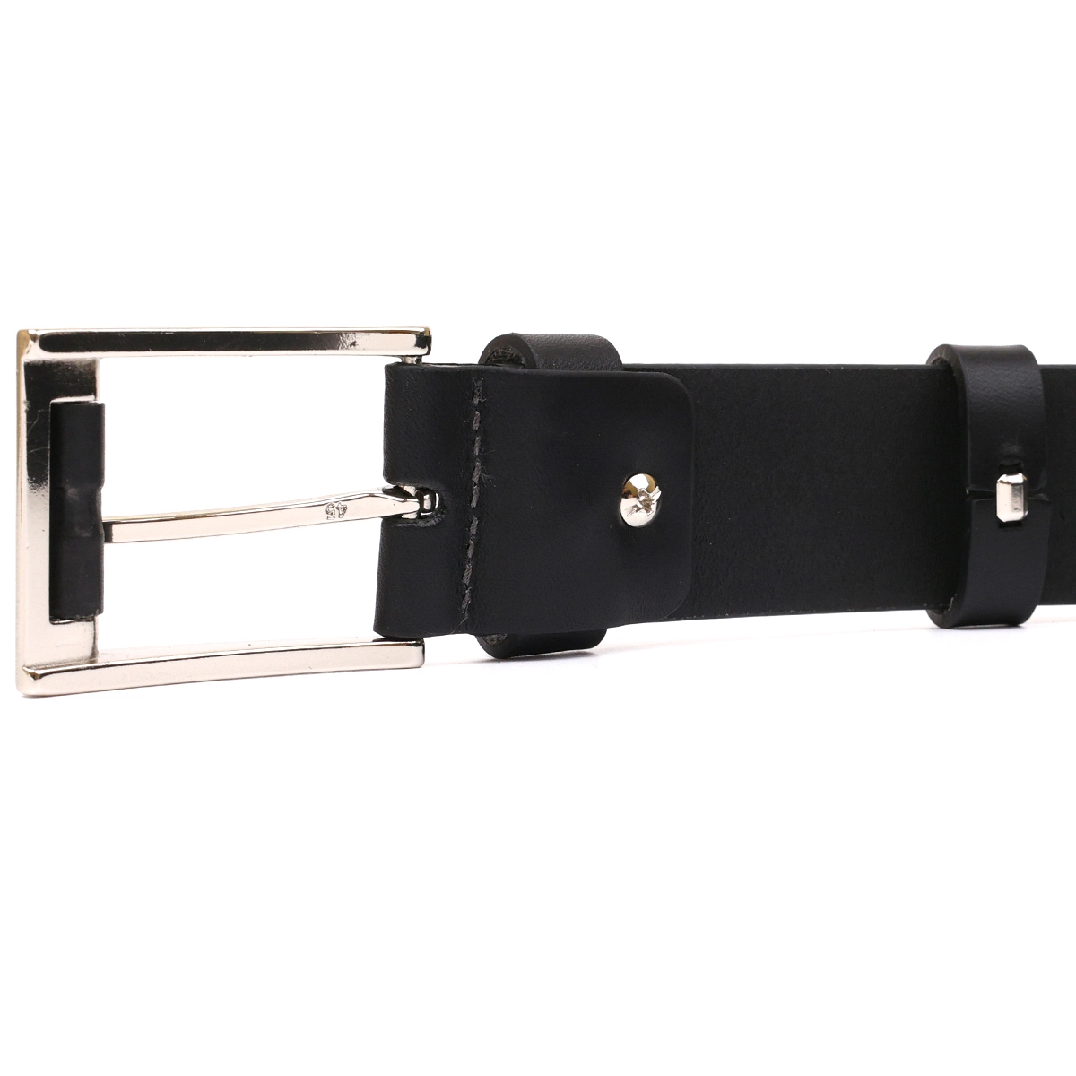 Великолепный ремень из натуральной кожи, который будет одинаково хорош как с джинсами, так и с брюками. Классический черный цвет и гладкая фактура, а также отсутствие лишних деталей подчеркнут солидность и деловой настрой владельца. Классическая пряжка ремня изготовлена из прочного металла цвета серебра и украшена черной кожей, а тиснение логотипа дополняет этот ансамбль.
