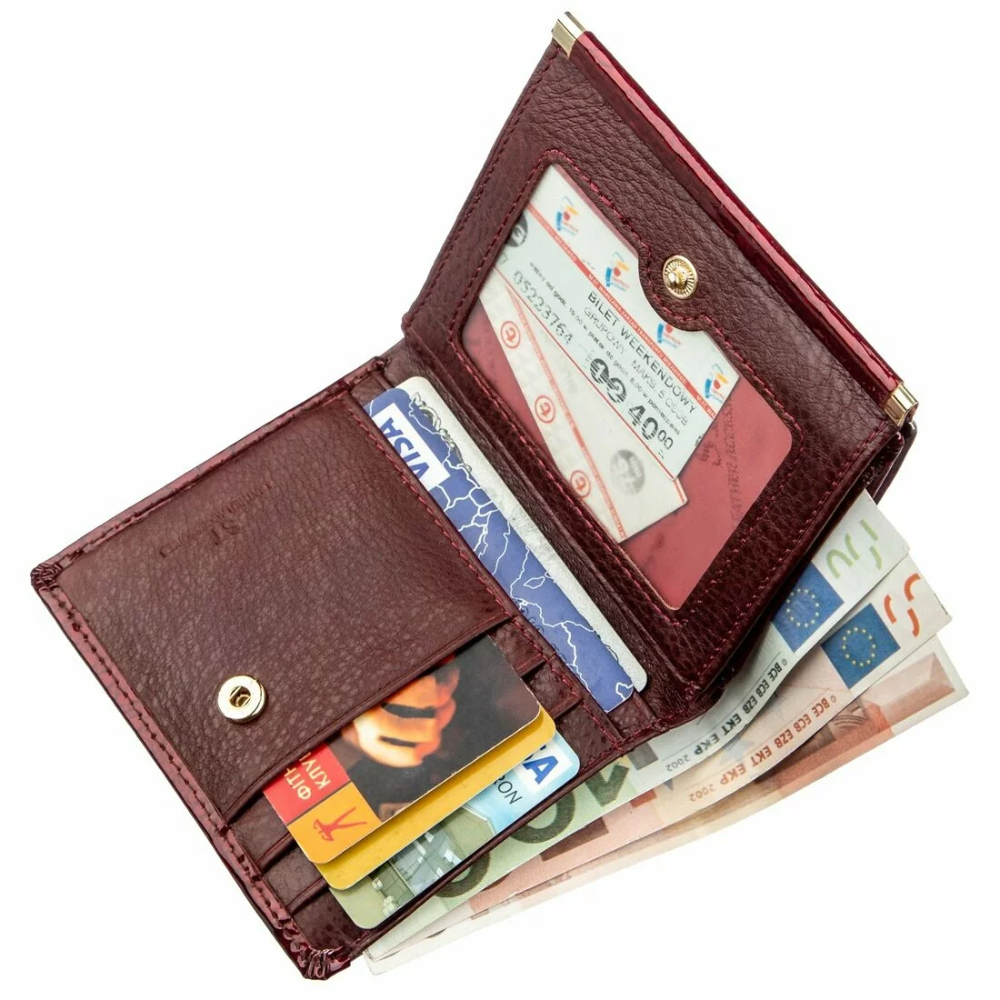 - женский кошелек из натуральной кожи на кнопке;