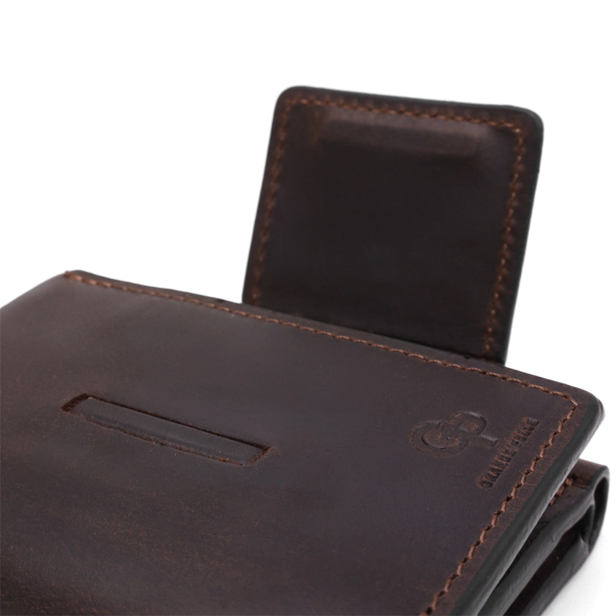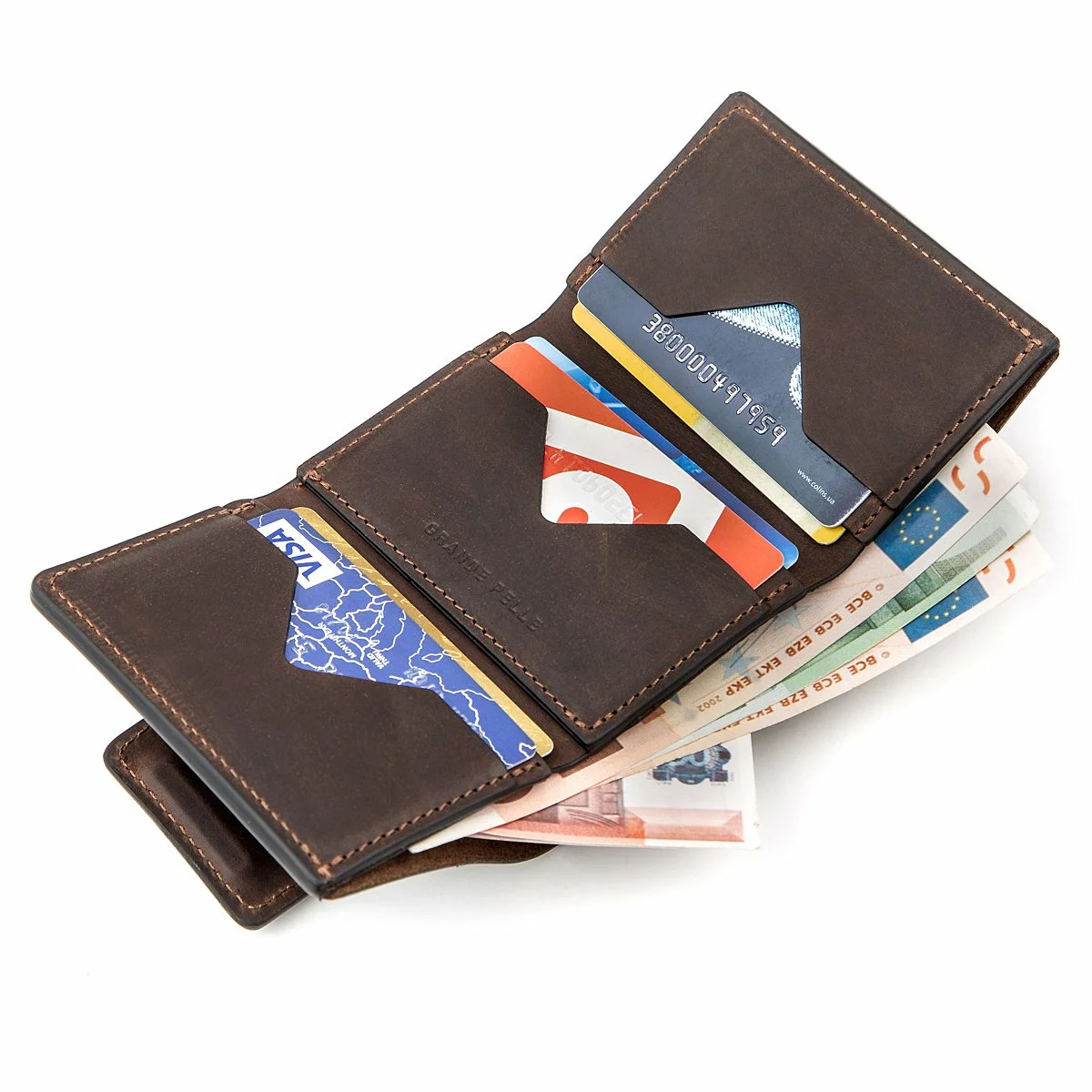 аксессуар, чтоб вместить в карман. Портмоне в коже такого плана