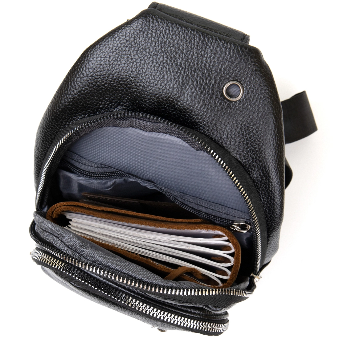 - встроенный диагональный карман на молнии на лицевой стороне;
