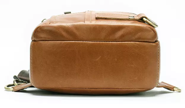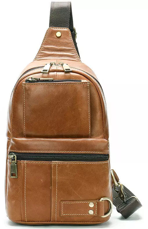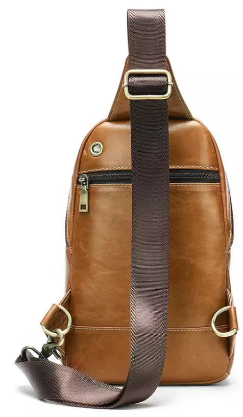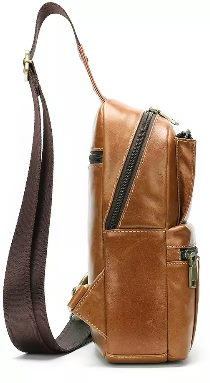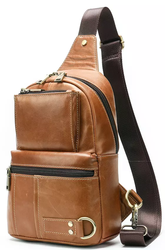 Практичная кожаная сумка через плечо рыжего цвета. При желании