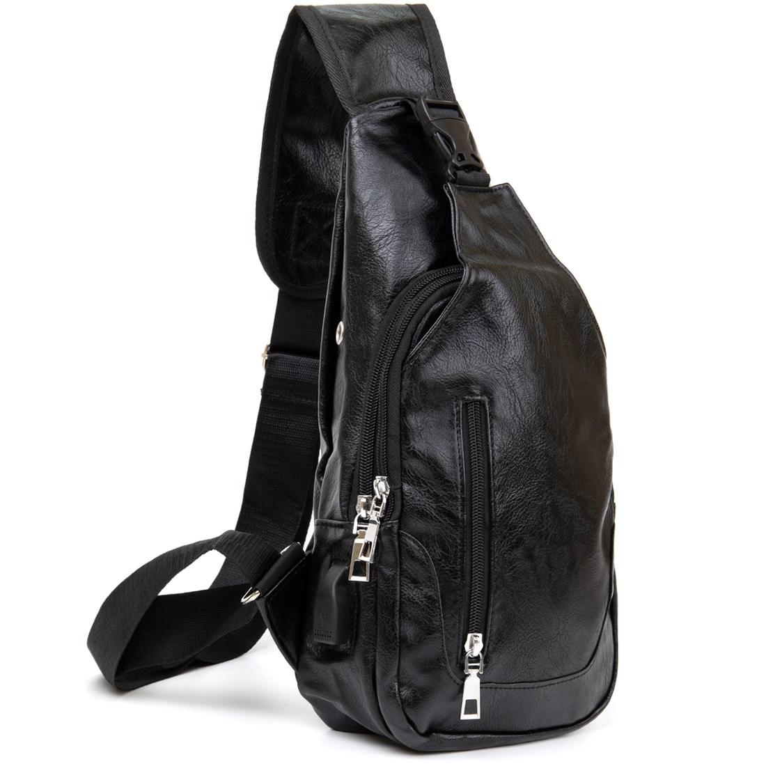 Очень компактная сумка из качественного кожзама черного цвета.