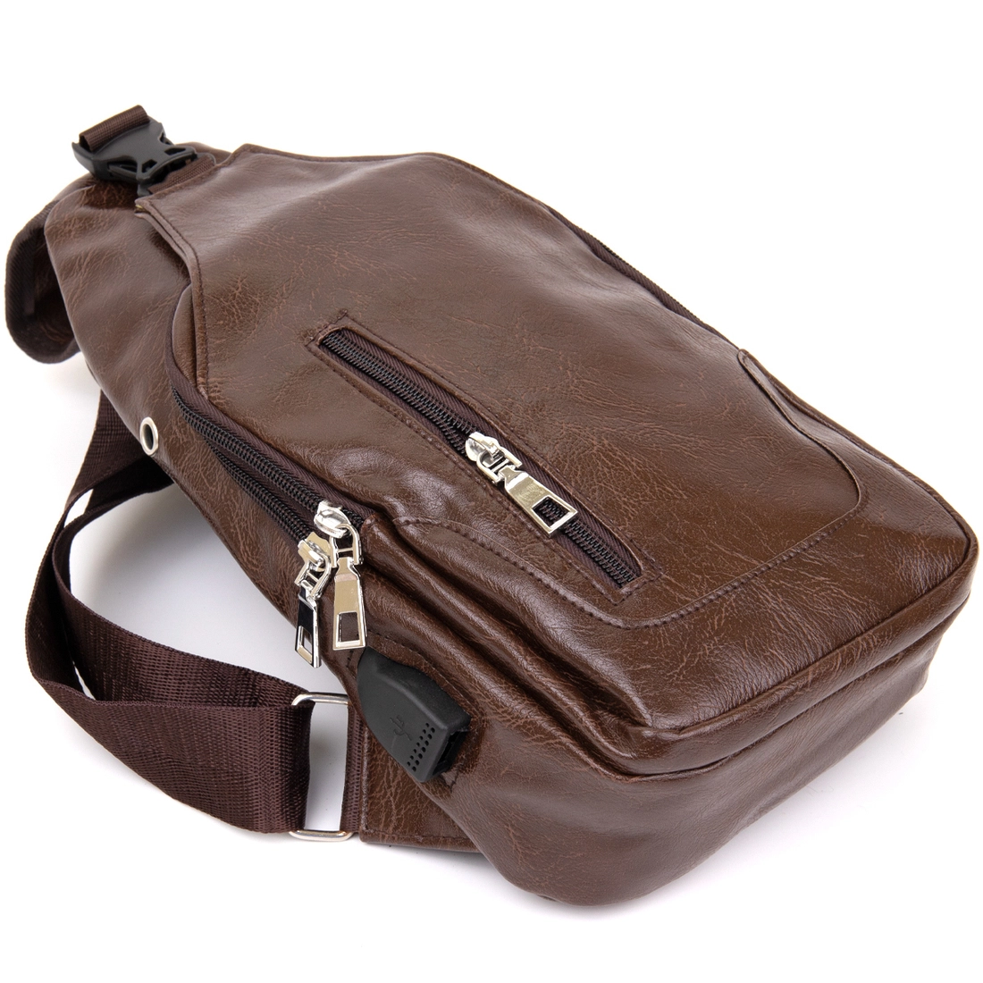 Очень компактная сумка из качественного кожзама коричневого цвета