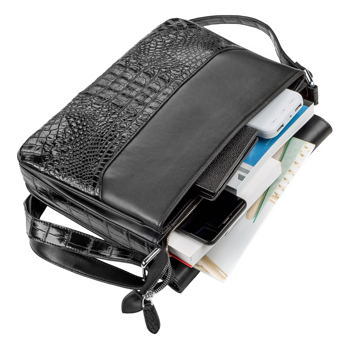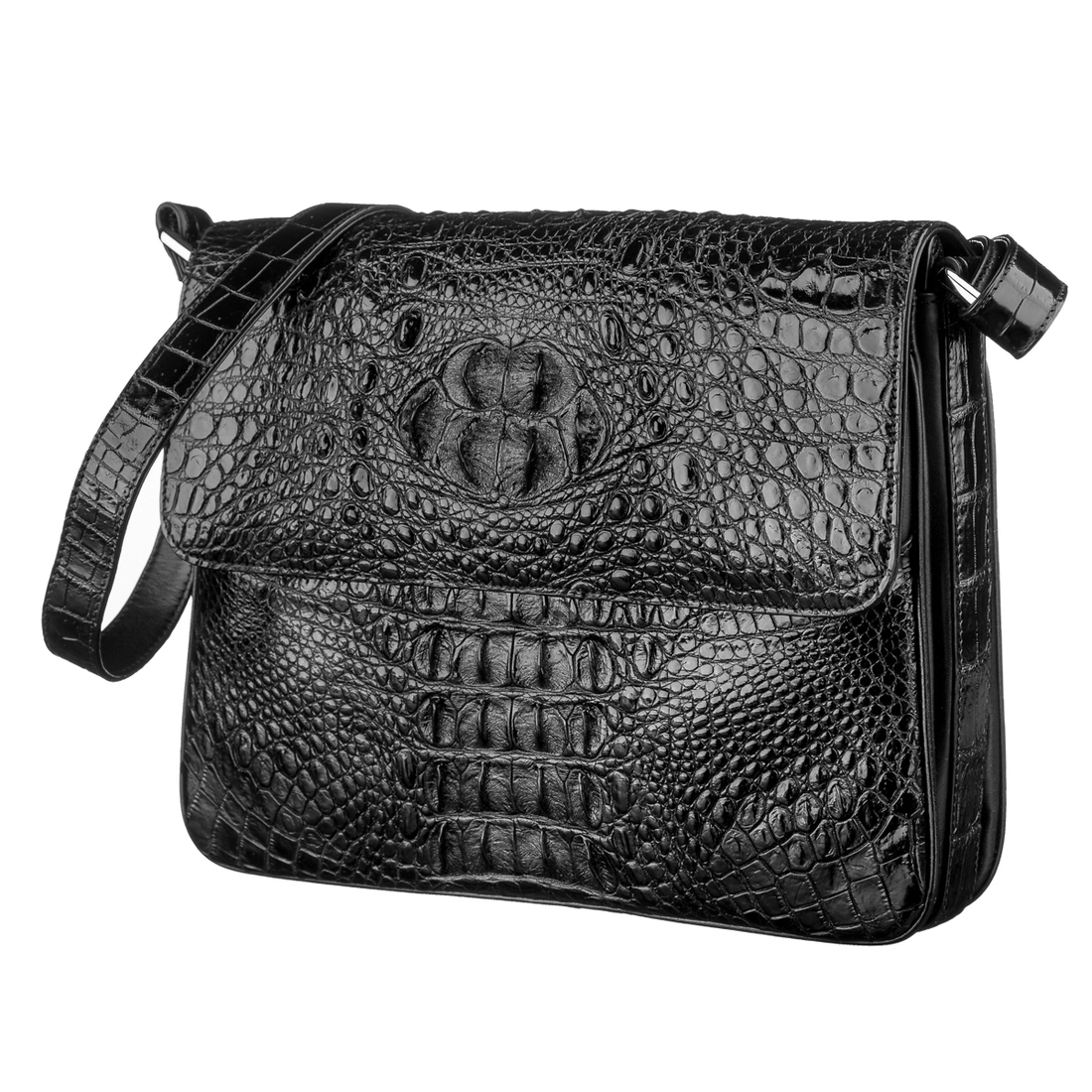 - регулируемый кожаный плечевой ремень из комбинации кожи крокодила