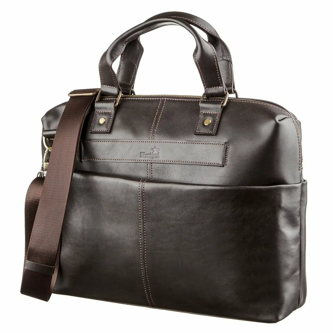 Коричневая мужская сумка под ноутбук в гладкой коже. Модель