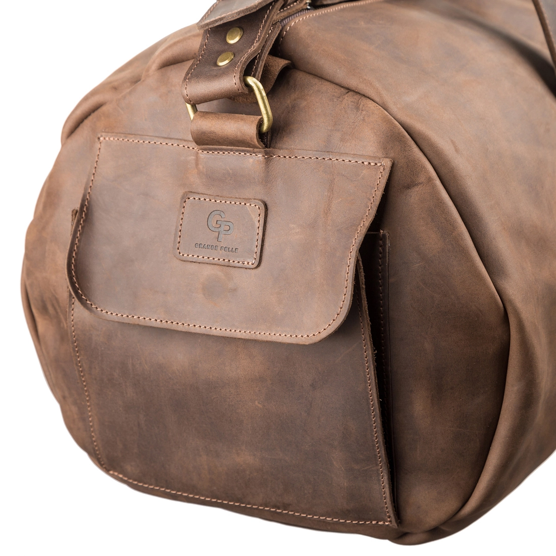 Интересная и стильная  дорожная сумка выполнена исключительно из цельной толстой, качественной, винтажной кожи, характерными признаками которой, являются: неоднородность окраса и потертости, которые придают изделию изысканного, индивидуального вида.