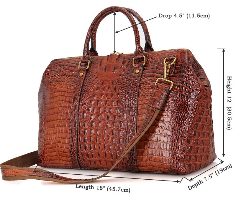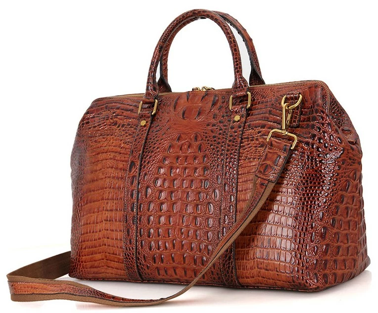 Эксклюзивная дорожная сумка из натуральной кожи с фактурой под крокодила. Изделия из кожи подобной фактуры очень популярны в этом сезоне. Цвет фурнитуры: латунь. Сумка надежно прошита сверхпрочной нитью. Переносить данный аксессуар можно в руке с помощью удобных кожаных ручек, а также через плечо (в комплекте съемный, регулируемый плечевой ремень). Сумка закрывается при помощи молнии. Изделие упаковано в текстильный пылезащитный чехол.