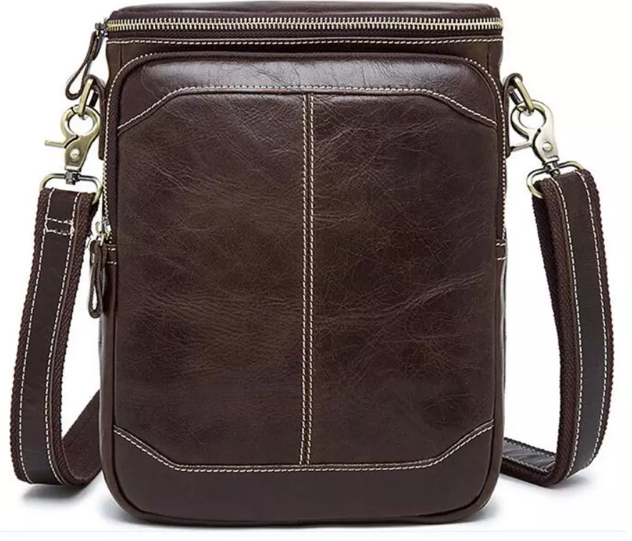 Тонкий мужской мессенджер из натуральной кожи. Аксессуар красиво блестит и переливается на солнце. Внутри - коричневая текстильная подкладка. Дополнено изделие фурнитурой цвета латуни из крепкого металла. Модель также прошита светлой ровной строчкой по краям в дизайн изделия. В сумке очень удобно будет носить планшет. С ней будет также очень удобно ходить на работу или встречи. Если вы ищете небольшую и качественную сумку на каждый день рекомендуем присмотреться к данной модели. Уверены, что проносите вы ее достаточно долго. Обратите внимание, что сумка может быть немного темнее и более блестящая, чем на фото с бордовым оттенком.