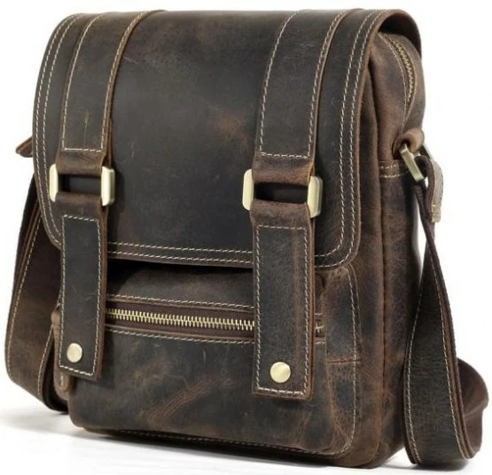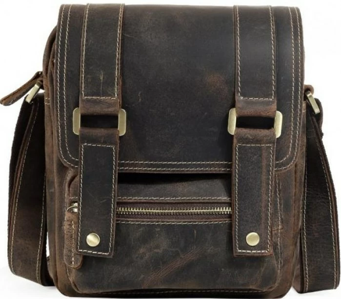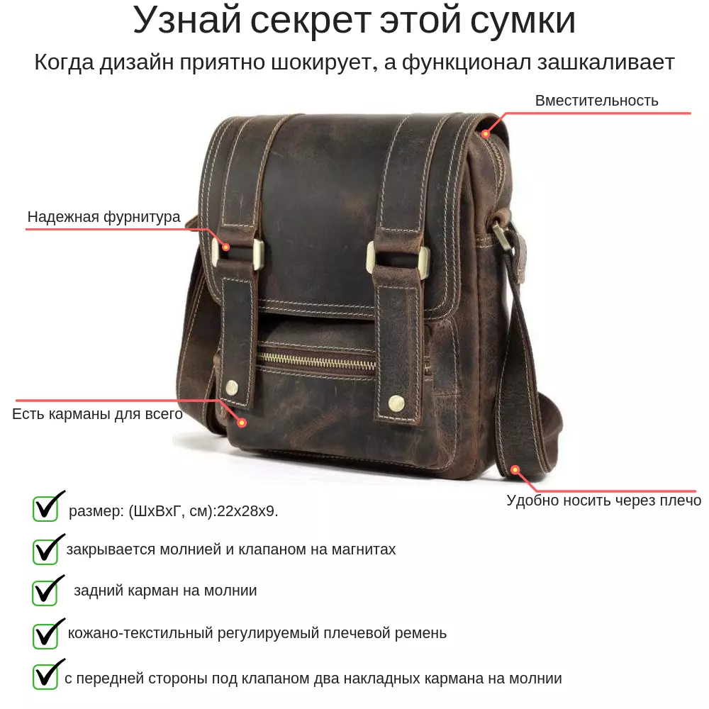 Коричневая кожаная сумка из натуральной винтажной кожи, иногда её