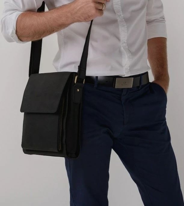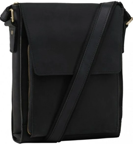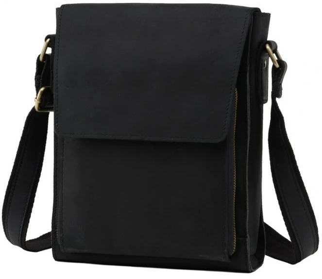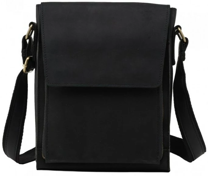 Черная кожаная сумка из натуральной винтажной кожи, иногда её