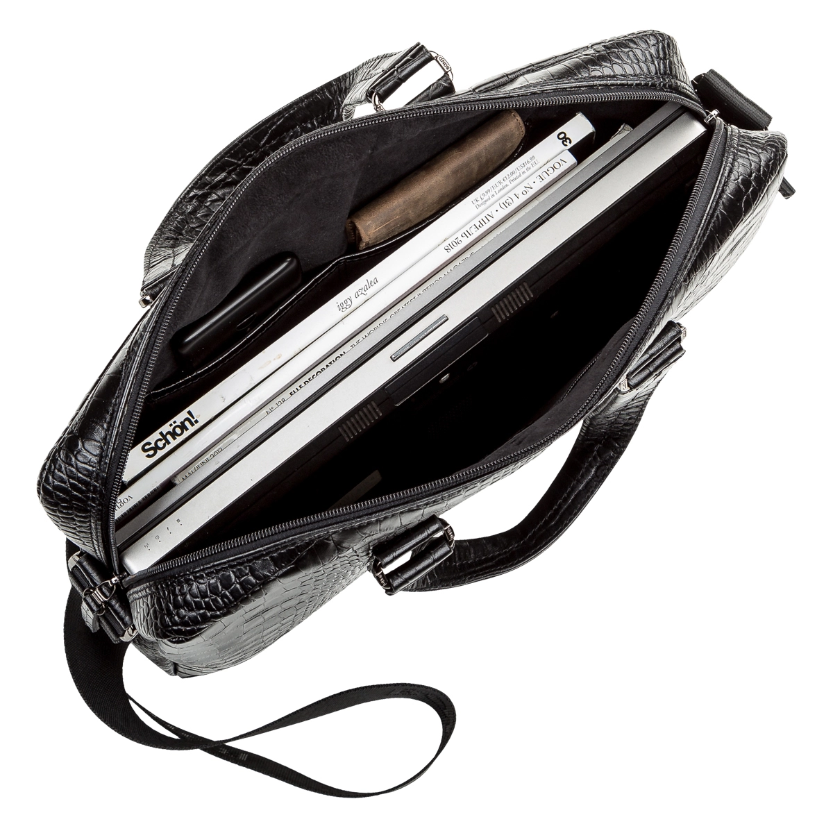 В основной отдел можно поместить ноутбук 15" или папку с