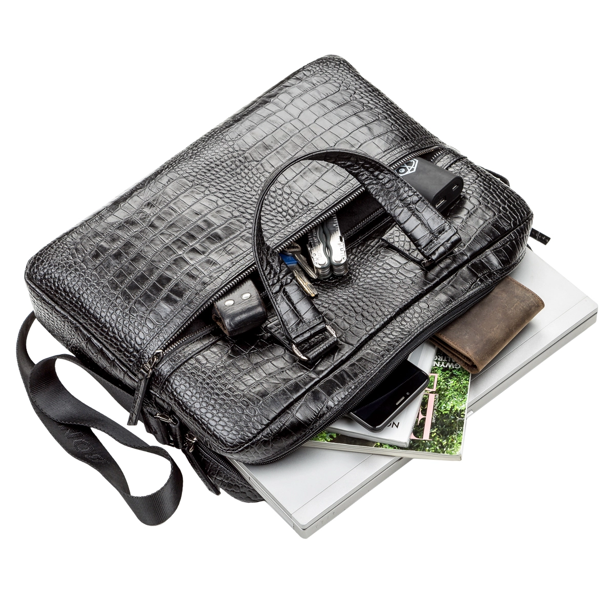 Большая сумка из натуральной кожи, с фактурой под крокодила,