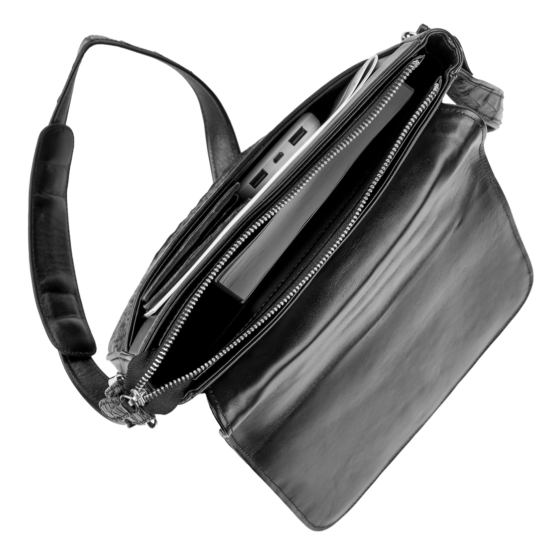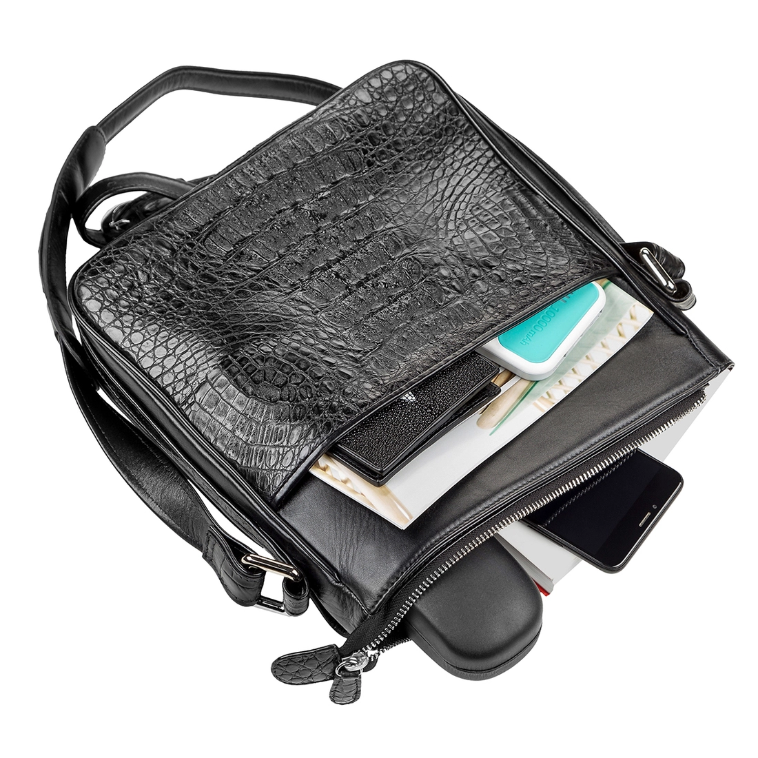 - регулируемый кожаный плечевой ремень из комбинации кожи крокодила