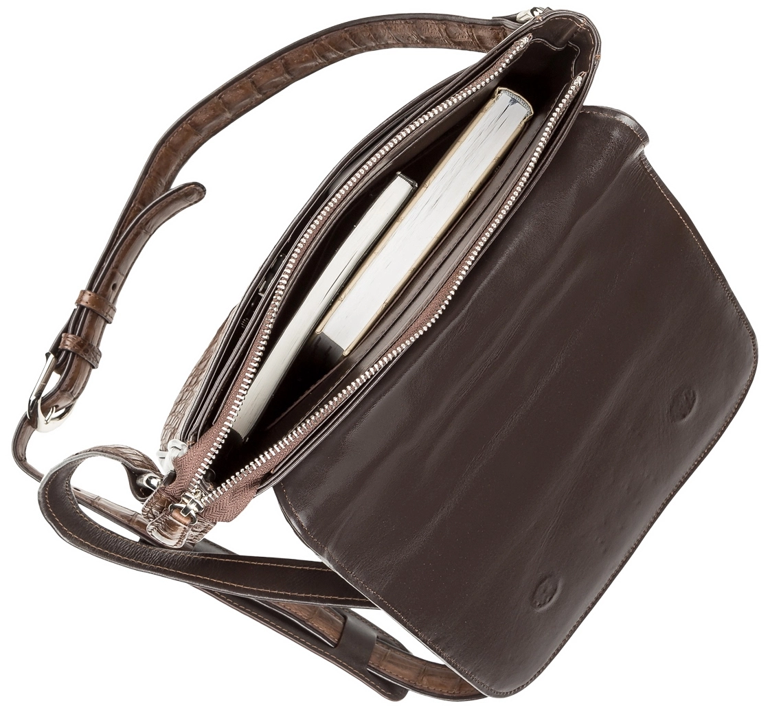 - регулируемый кожаный плечевой ремень из комбинации кожи крокодила