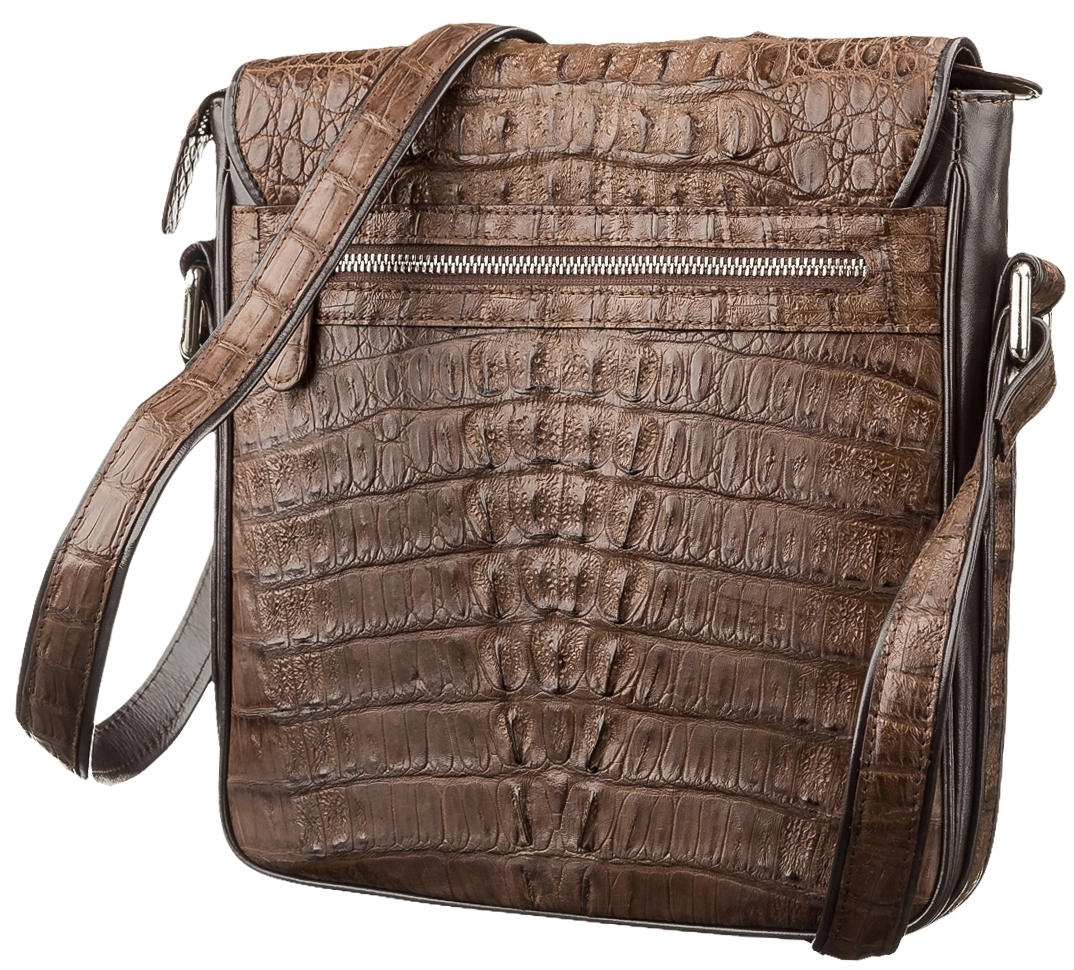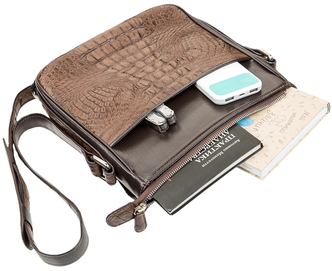 Мужская коричневая сумка из натуральной кожи крокодила, на