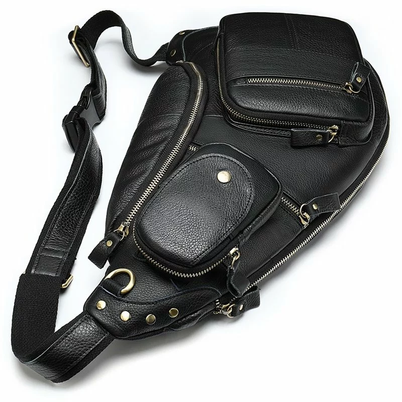 Оригинальная сумка-рюкзак через плечо. Модель открывается сбоку. Вы также можете регулировать наполненность рюкзака с помощью боковой молнии. Аксессуар дополнен фурнитурой золотистого цвета. Оригинальный дизайн выделит вас из толпы и подчеркнет индивидуальность. С такой сумкой удобно будет ходить на занятия спортом.