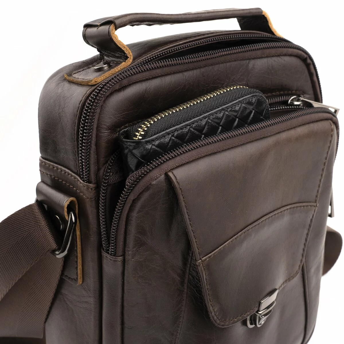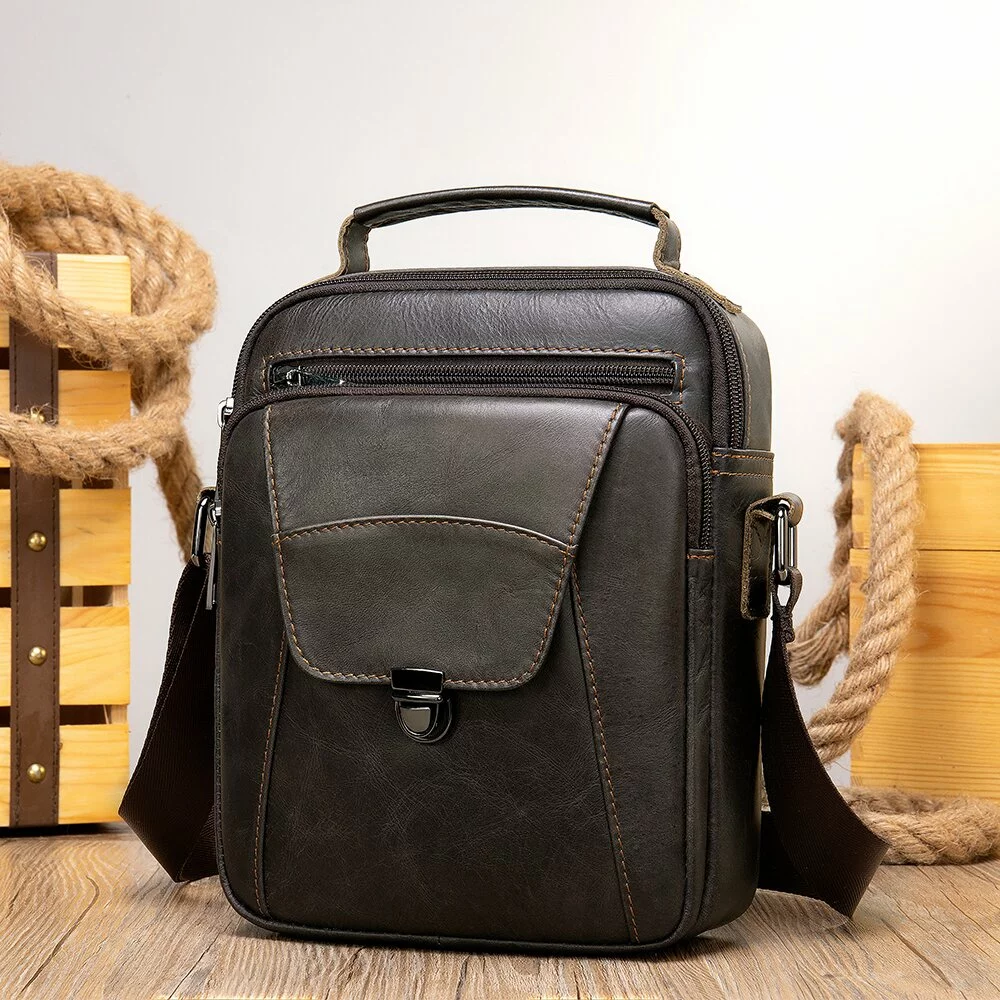 Качественная мужская сумка из натуральной кожи компактного размера.