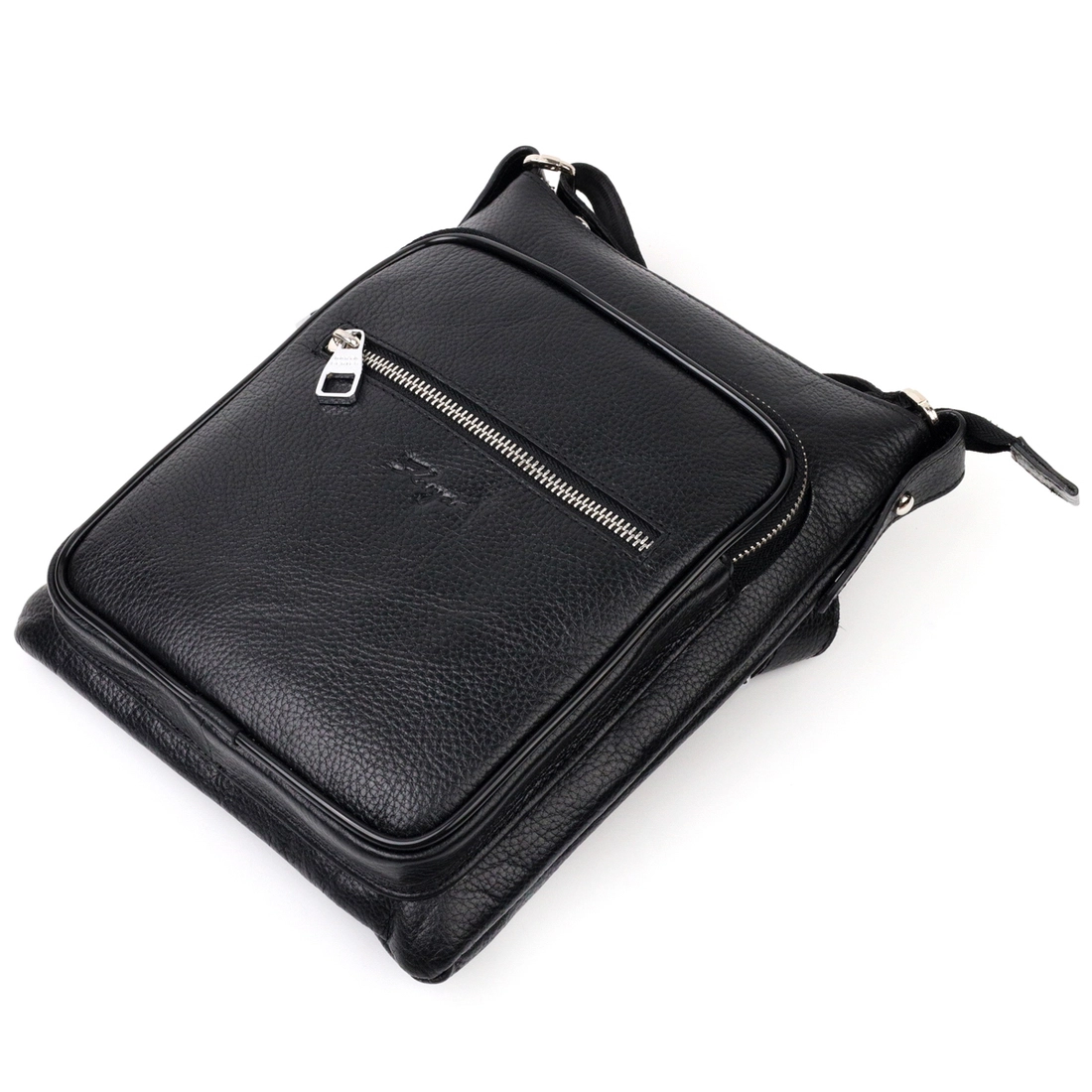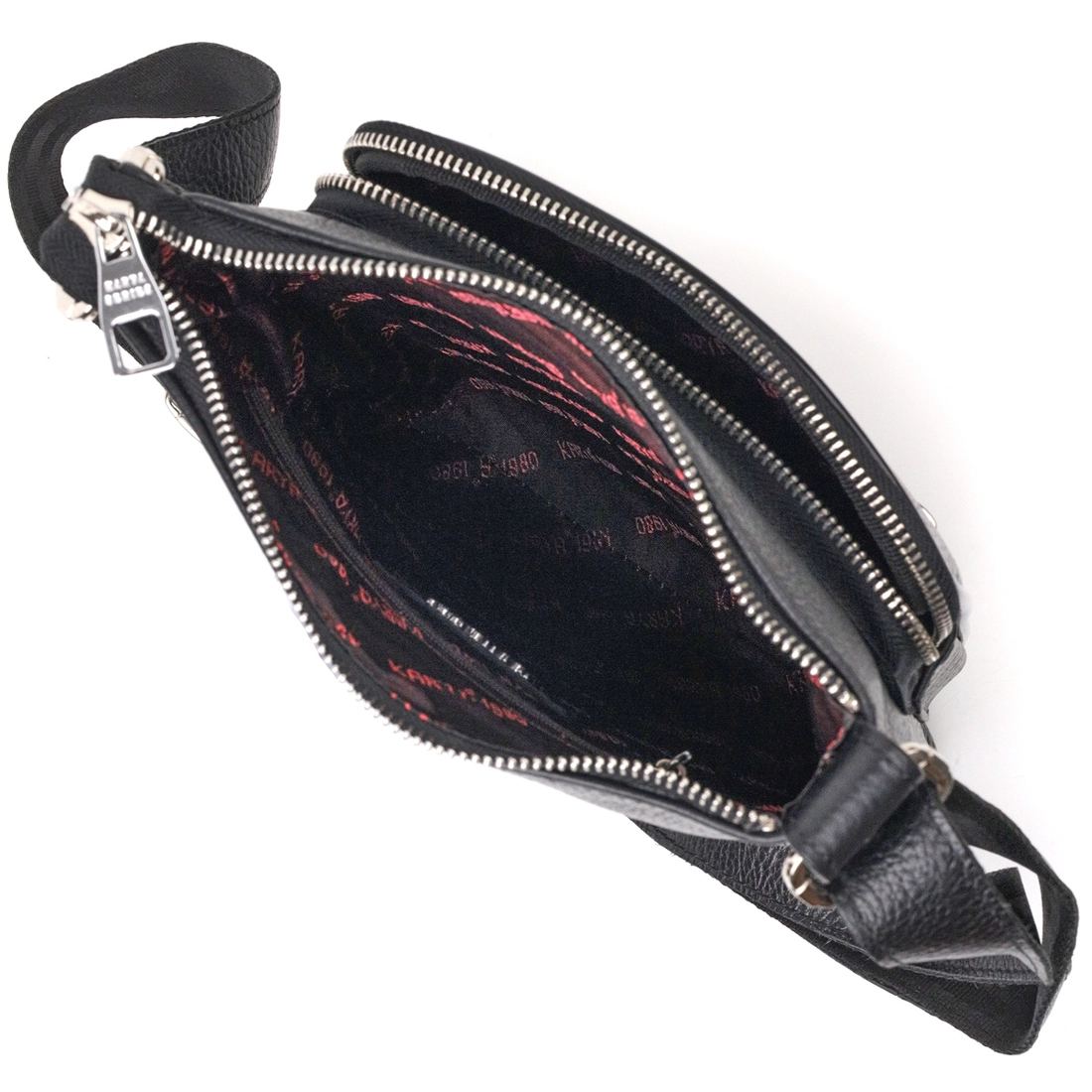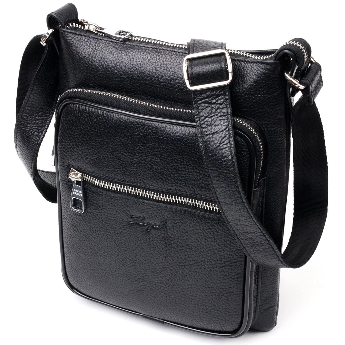 Аксессуар закрывается на молнии и выполнен из натуральной кожи