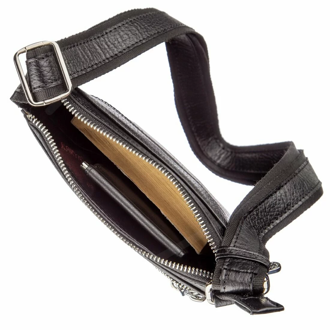 фурнитурой и прошит по краям черной нитью. Внутри аксессуара