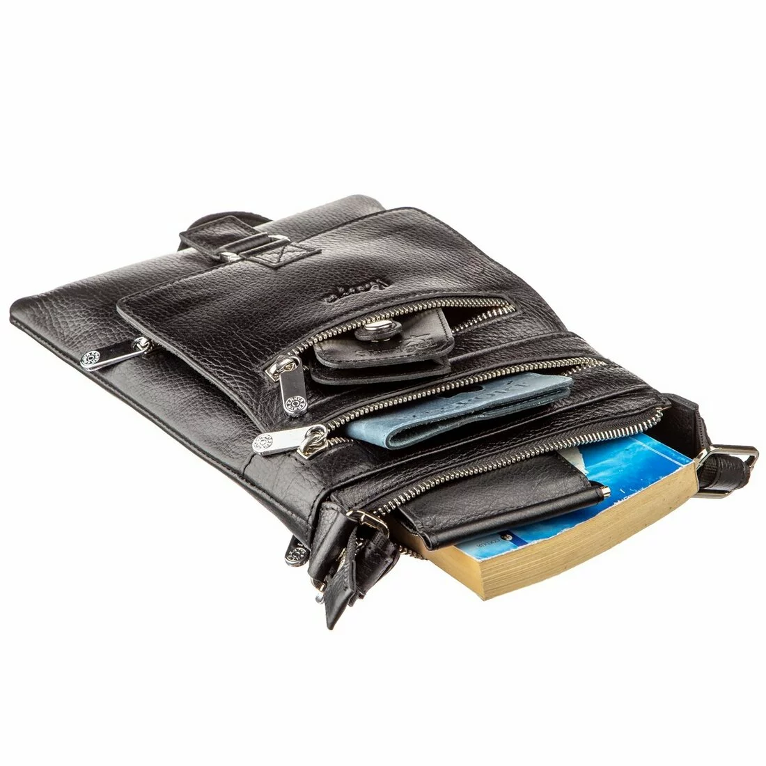 - 4 слота для кредиток под клапаном и маленький встроенный карман