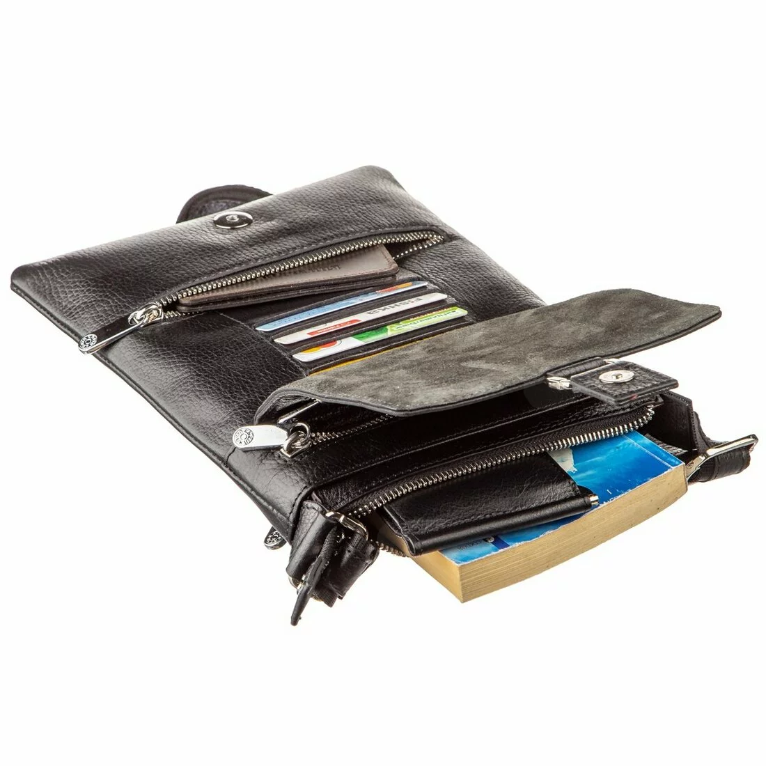 - 4 слота для кредиток под клапаном и маленький встроенный карман