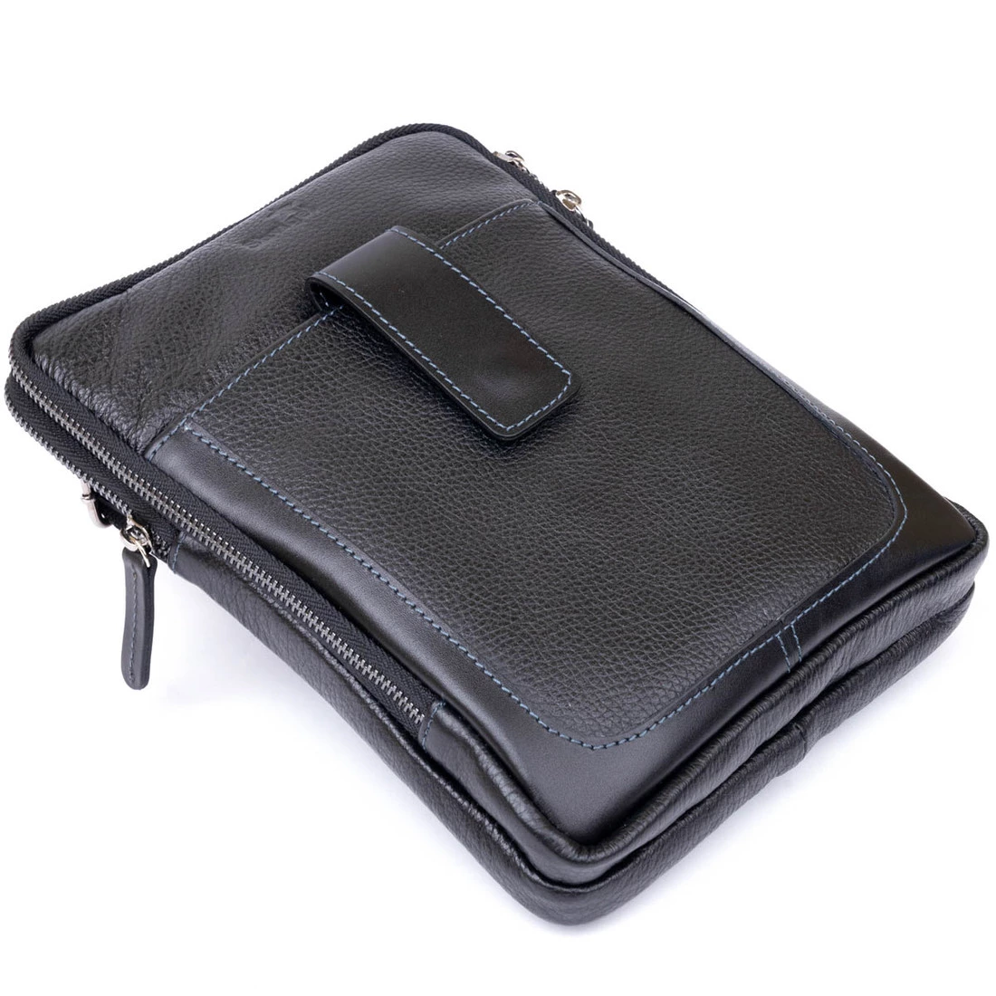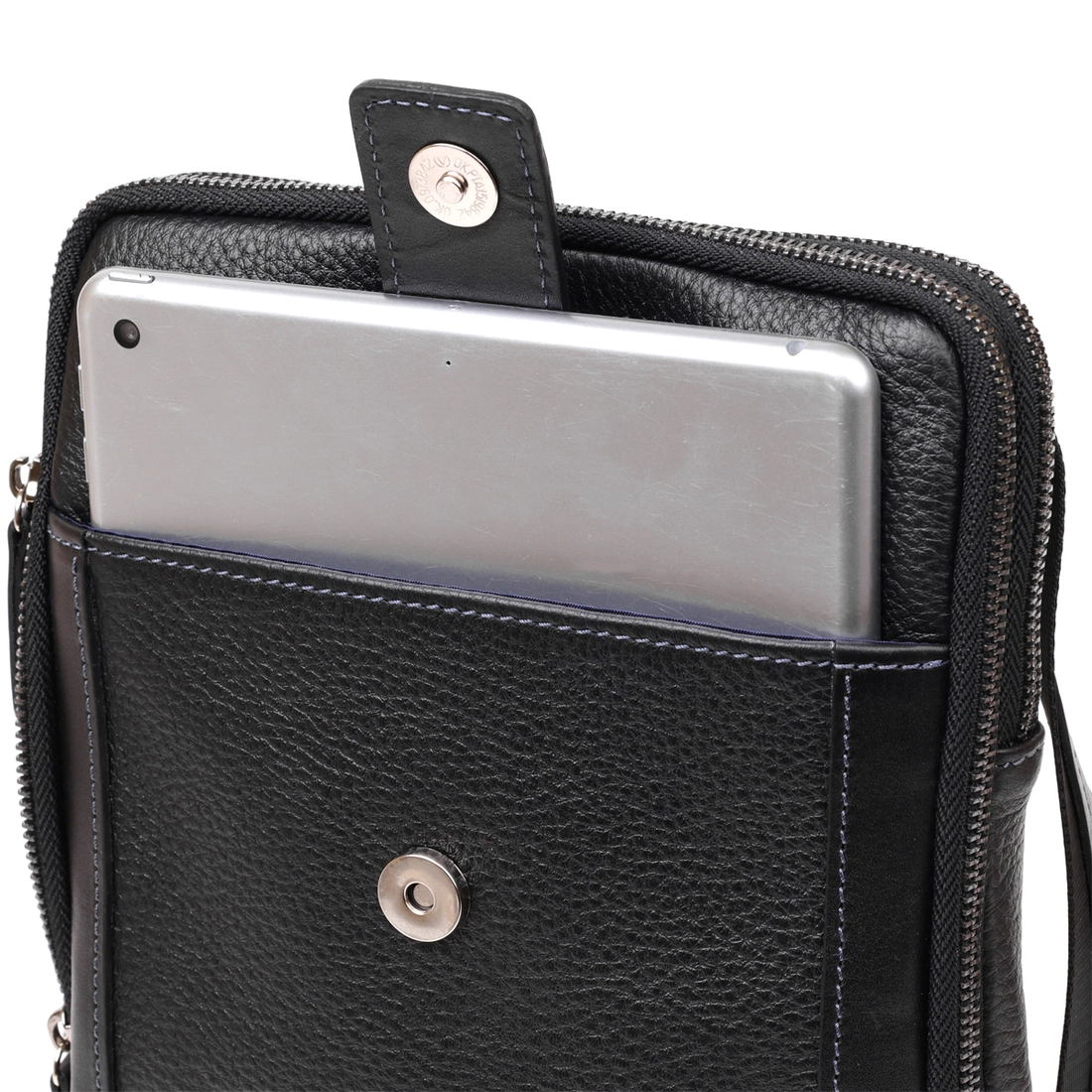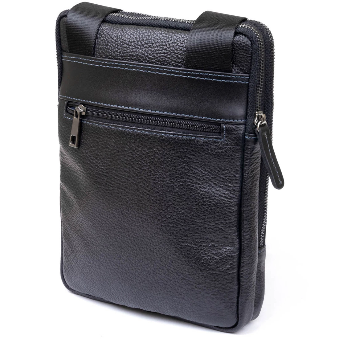 Практичная сумка в зернистой коже "флотар" на два отделения. Модель в классическом черном цвете. Производство - Украина. Высочайшее качество исполнения. Крепкая фурнитура и качественные материалы. Зернистая кожа совсем неприхотлива в уходе. Долго служит и остается в идеальном виде. На изделиях из зернистой кожи меньше видны царапины и потертости. Мужской планшет - лучший вариант сумки на каждый день и для встреч. В дизайне модели нет никаких лишних деталей при этом сумка выглядит очень модно и стильно. На лицевой стороне модели тиснение в виде логотипа бренда. Сумка дополнена вставками из гладкой кожи по бокам и хлястик на лицевой стороне, что подчеркнет ее индивидуальный и продуманный дизайн, а вам в свою очередь добавит уверенности и солидности. Аксессуар дополнен текстильным несъемным ремешком на плечо. Кожаная сумка - лучший подарок для любого мужчины. Если вы хотите такую же модель в корчневом цвете - код для поиска 11286, в винтажной коже - 11285.