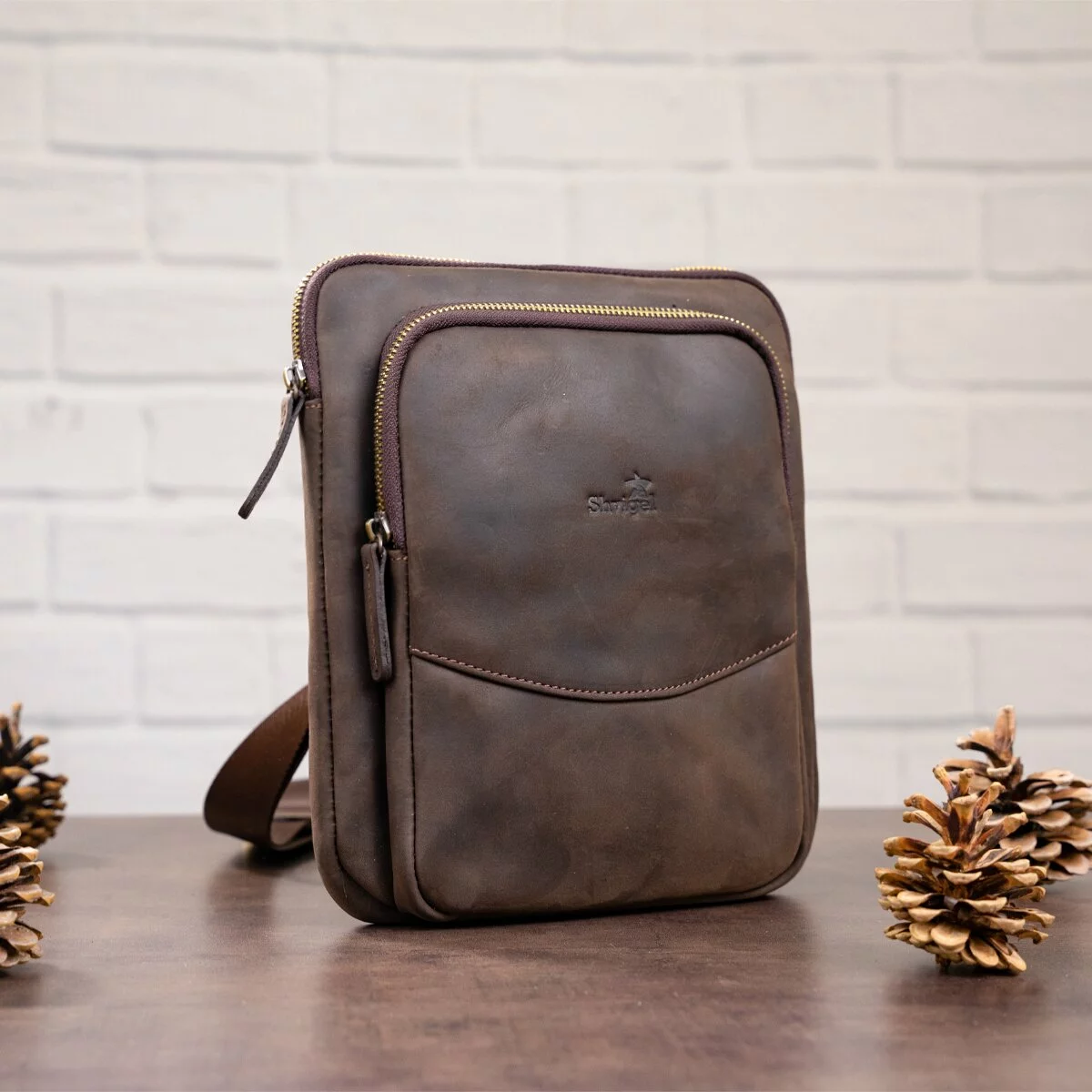 Небольшая мужская сумка-планшет, из натуральной винтажной кожи,