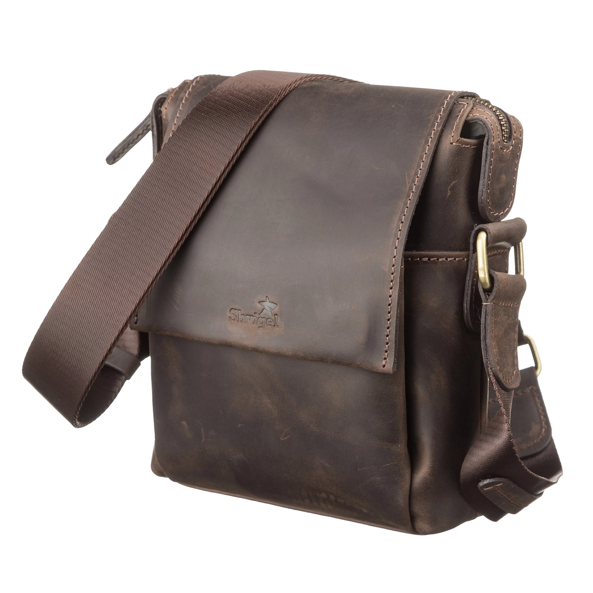 Мужская кожаная сумка небольшого размера с клапаном. Аксессуар