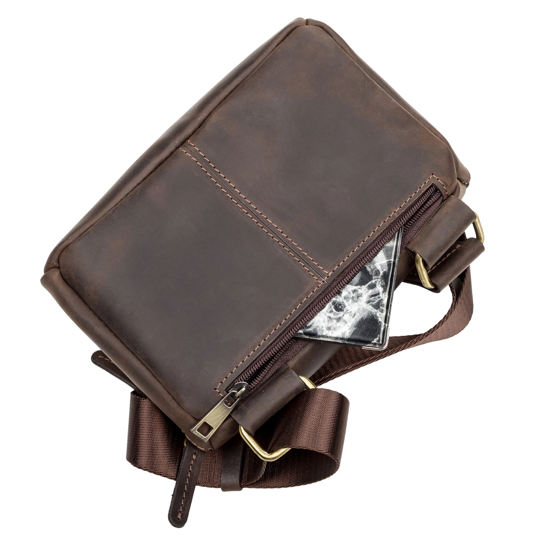 Стильная мужская кожаная сумка, из популярной винтажной кожи, небольшого размера. Современный и модный дизайн.