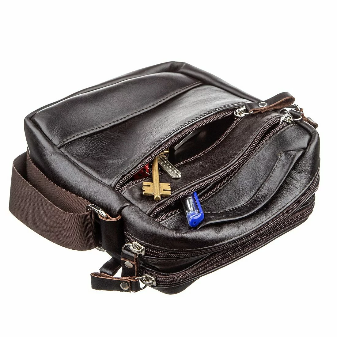 Компактная мужская кожаная сумка для автомобилистов. Несмотря на свои небольшие размеры, аксессуар является весьма вместительным и функциональным. Модель дополнена фурнитурой серебристого цвета. Сумку можно носить как на плече, так и в руке. Аксессуар оснащен крепким текстильным ремешком. Очень легкая и мягкая на ощупь. Может быть идеальным подарком по любому поводу.