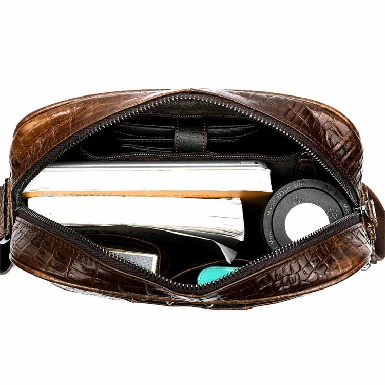 Добротная мужская вертикальная сумка наилучшего качества. Аксессуар подходит на встречи, работу и прогулки. Идеальный вариант на каждый день. Сумка удобно носится на плече. Аксессуар имеет тиснение под кожу крокодила и носится довольно долго и не капризный в уходе. Модель из кожи рептилии оценит каждый мужчина. Стоит отметить, что на кожа такого плана не видно царапин и потертостей. Будет прекрасным подарком. Сумка упакована в тканевой чехол, что защищает ее от пыли и износа.