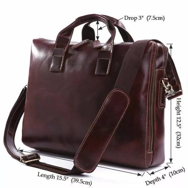 Отличная мужская сумка, вмещает ноутбук 15,6 дюйма. Прекрасно подойдет для повседневной эксплуатации. Сумка изготовлена из толстой винтажной кожи. Можно носить как с помощью ручек так и через плечо.