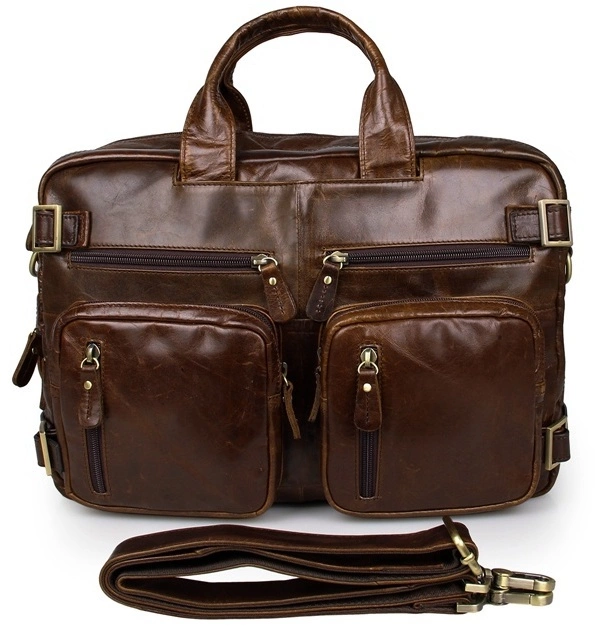 Эксклюзивная сумка-трансформер из натуральной винтажной кожи коричневого цвета. Аксессуар необычайно удобен, практичен и функционален. Такая сумка, несомненно, должна понравиться современному человеку. Аксессуар имеет множество карманов, его можно носить в руке, через плечо, а также как рюкзак.
