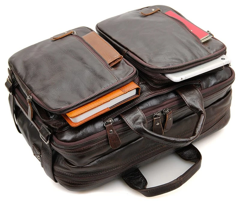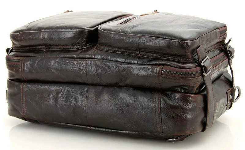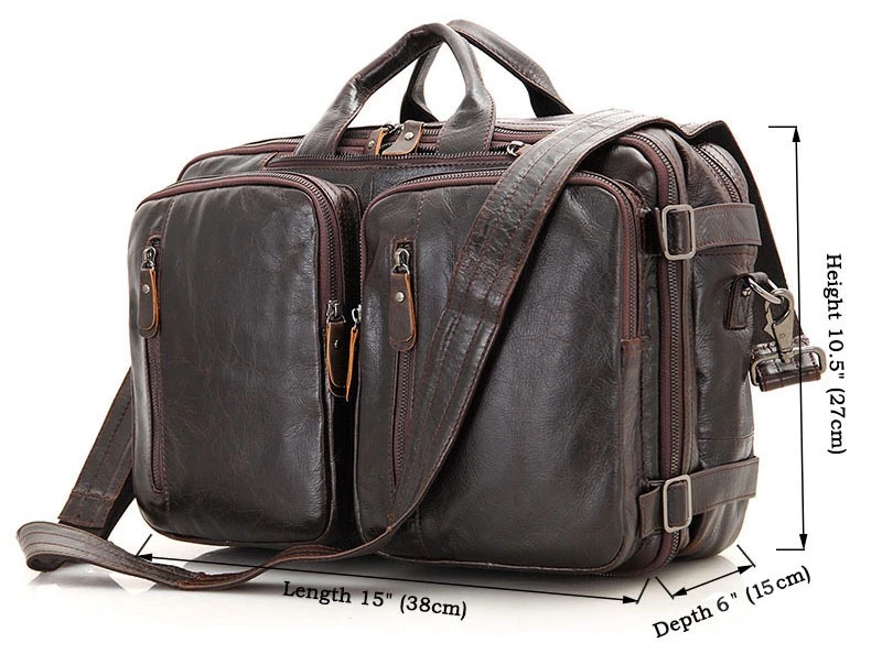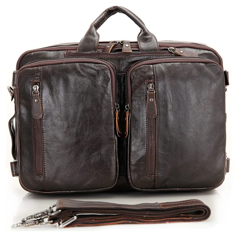 Мужская сумка-трансформер из натуральной кожи. При изготовлении аксессуара использовалась надежная фурнитура и качественная подкладка. Сумку можно носить в руке, через плечо, а также как рюкзак. Сумка имеет благородных коричневый цвет и стильный внешний вид. В такой аксессуар поместится большинство вещей нужных современному человеку.