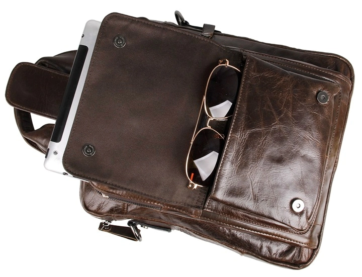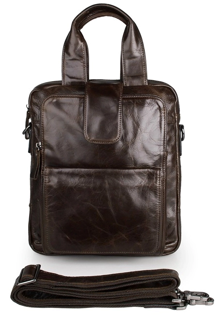 Элитная сумка из натуральной высококачественной кожи темно-коричневого цвета. Такую многофункциональную сумку можно носить в руке, а также через плечо. Цвет фурнитуры данного изделия: черное серебро. Сумка выглядит очень модно и дорого. Не смотря на свои весьма компактные размеры, данная модель чрезвычайно вместительна и удобна в использовании. Аксессуар упакован в текстильный пылезащитный чехол белого цвета.