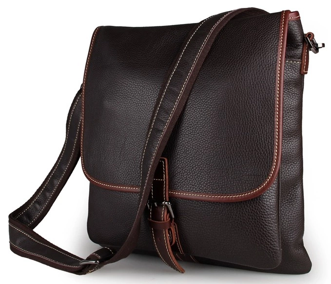 Очень красивая мужская сумка больших размеров. Аксессуар выполнен из натуральной высококачественной кожи приятной на ощупь. Цвет фурнитуры: темное серебро. Молнии металлические. Сумка аккуратно прошита прочной нитью в светлых тонах. Закрывается аксессуар при помощи клапана и хлястика на магнитной кнопке. Под клапаном находится два больших накладных кармана и отделение на молнии. Подкладка выполнена из прочного текстильного материала.
