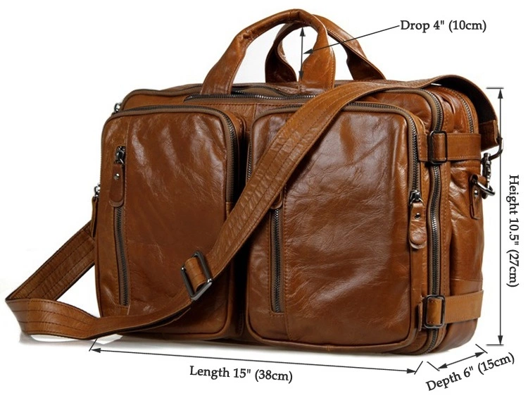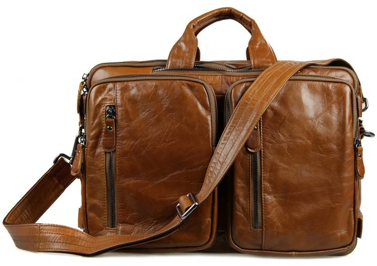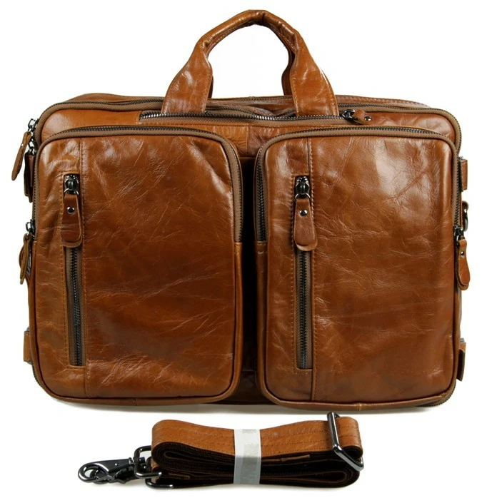 Великолепная мужская кожаная сумка-трансформер рыжого цвета. Данную модель можно носить в руке, через плечо или же как рюкзак. Цвет фурнитуры: темное серебро. На лицевой стороне изделия находится 4 отделения на молнии. Предусмотрены специальные карманчики на молнии в которые можно прятать кожаные ручки. Сумка упакована в текстильный пылезащитный чехол белого цвета.