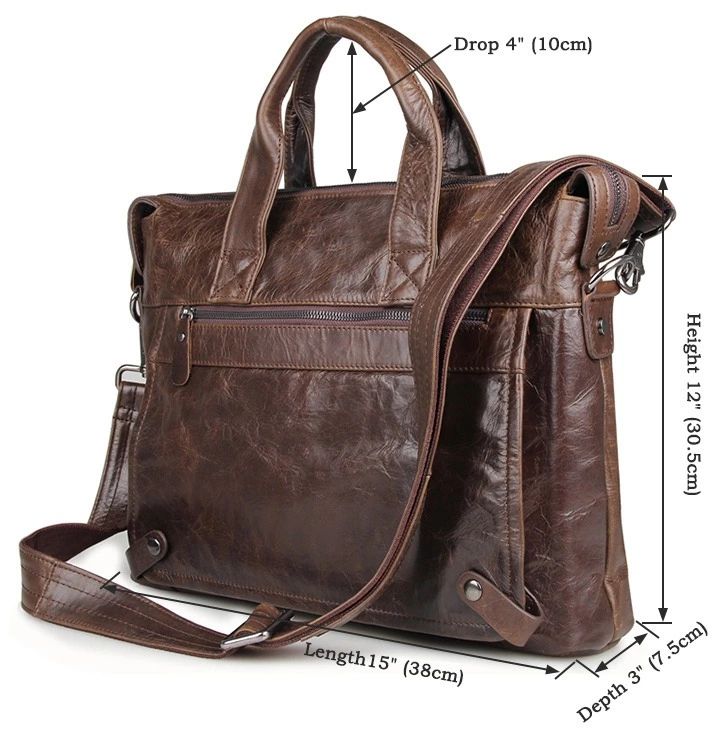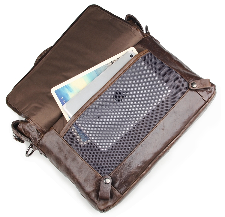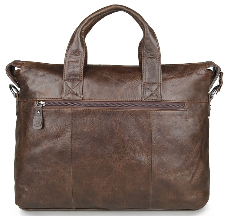 Шикарная мужская сумка с отделением для небольшого ноутбука. Аксессуар выполнен из натуральной высококачественной винтажной кожи. Цвет фурнитуры: темное серебро. Изделие прошито прочной нитью коричневого цвета. Швы ровные, аккуратные. Сумка носиться в руке с помощью удобных кожаных ручек или через плечо (в комплекте съемный регулируемый плечевой ремень). На лицевой стороне расположено отделение на молнии и накладной карман под клапаном. На задней внешней стороне находится отделение на молнии.