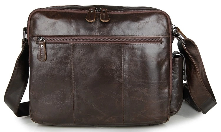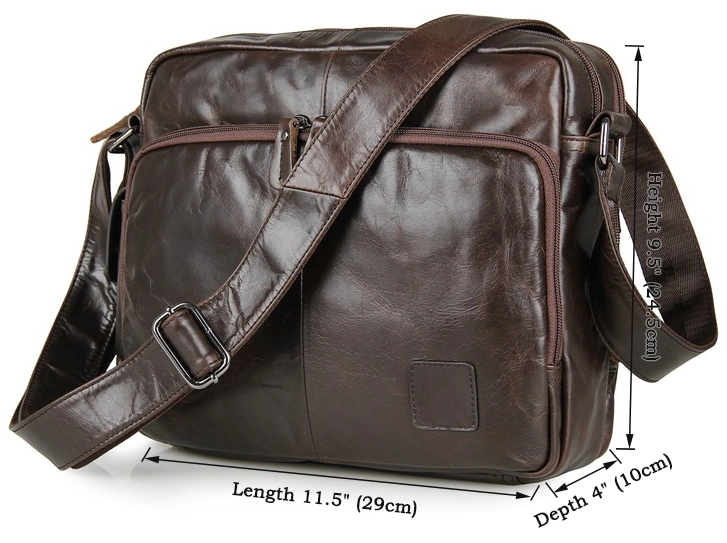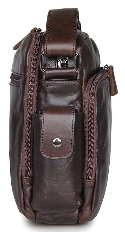 Стильная мужская кожаная сумка через плечо. Цвет фурнитуры: серебро. Изделие имеет 2 автономных отделения, которые закрываются молниями. На задней внешней стороне расположен карман на молнии. На боковой грани находится отделение для мобильного телефона, которое закрывается хлястиком на магнитной кнопке.