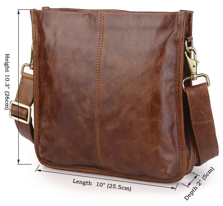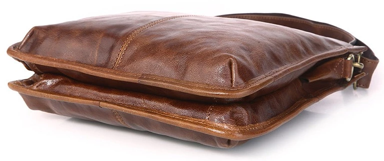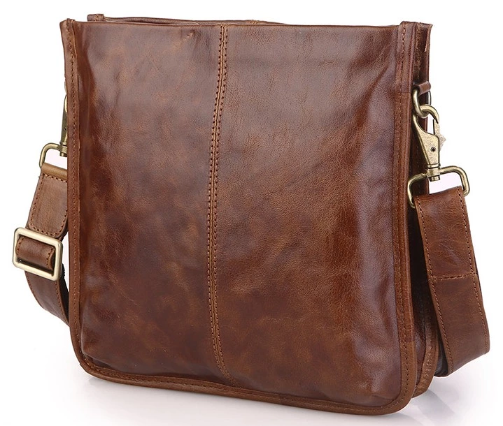 Небольшая мужская сумка-планшет из натуральной винтажной кожи. Цвет фурнитуры: латунь. Аксессуар имеет три автономных отделения, два из которых закрываются молнией и одно магнитной кнопкой. В первом отделении находятся 2 небольших накладных кармана, а в третьем расположено отделение на молнии. Сумка упакована в текстильный пылезащитный чехол белого цвета.