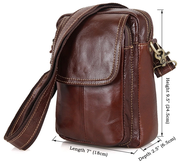 Современная сумка небольшого размера. Аксессуар выполнен из натуральной высококачественной кожи. Кожа отличается легким блеском. Цвет фурнитуры: латунь. На лицевой стороне под клапаном на магнитной кнопке расположены два отделения на молнии. Сумка носиться через плечо при помощи удобного, съемного, регулируемого плечевого ремня. Изделие упаковано в текстильный пылезащитный чехол.