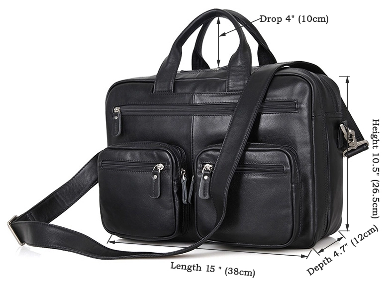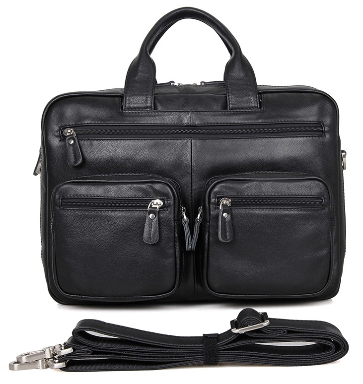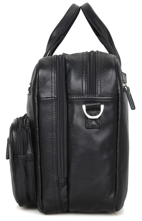 Эксклюзивная мужская кожаная сумка для ноутбука. Аксессуар отличается множеством карманов и отделений, что позволяет поместить в него максимум нужных вещей. Цвет фурнитуры: латунь. На лицевой стороне расположены три отделения на молниях (два небольших и одно большое). На задней внешней стороне находится вместительное отделение на молнии. Сумку можно переносить в руке, а также через плечо (в комплекте съемный, регулируемый плечевой ремень). Изделие упаковано в текстильный пылезащитный чехол белого цвета.