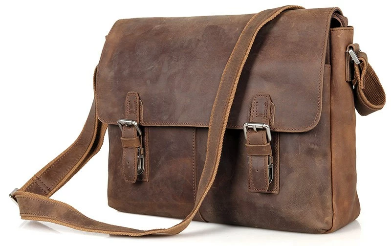 Элитная мужская кожаная сумка из натуральной винтажной кожи. Цвет фурнитуры: серебро. Носиться данная модель через плечо при помощи регулируемого плечевого ремня. На задней внешней стороне расположен карман на молнии. Сумка закрывается клапаном на двух защелках и молнией. Под клапаном расположен накладной карман на молнии. Аксессуар поставляется в текстильном пылезащитном чехле белого цвета. Подкладка выполнена из прочного текстильного материала коричневого цвета.
