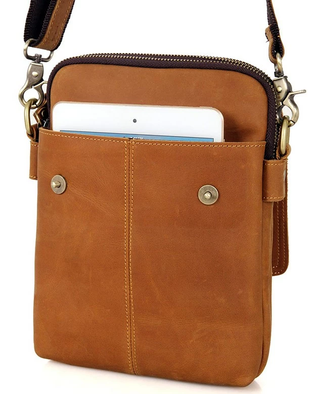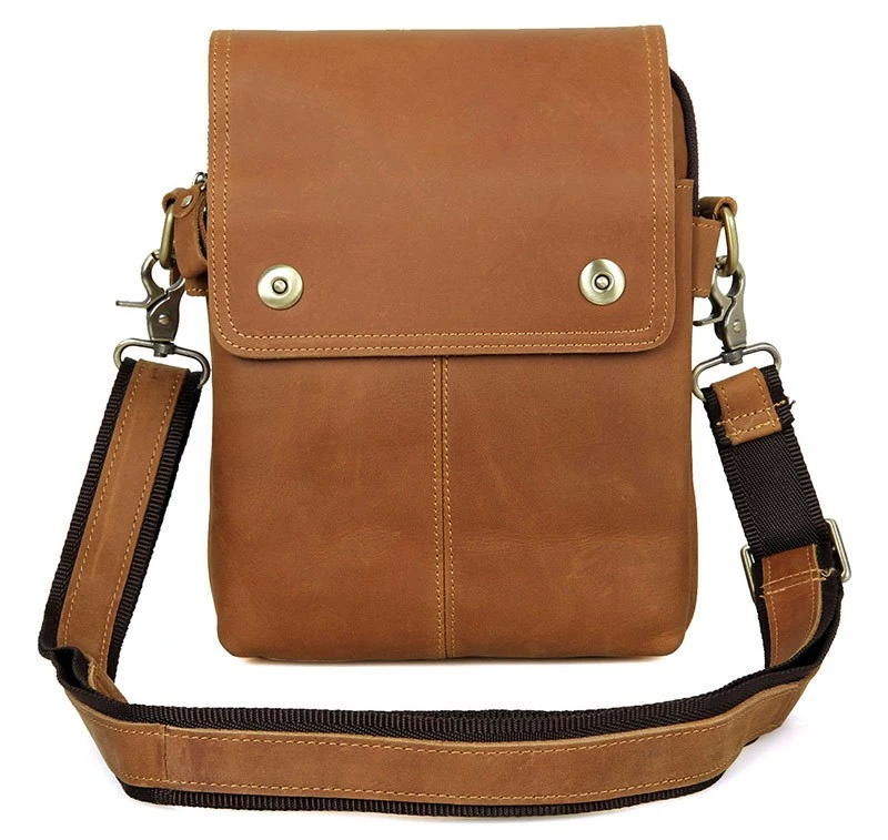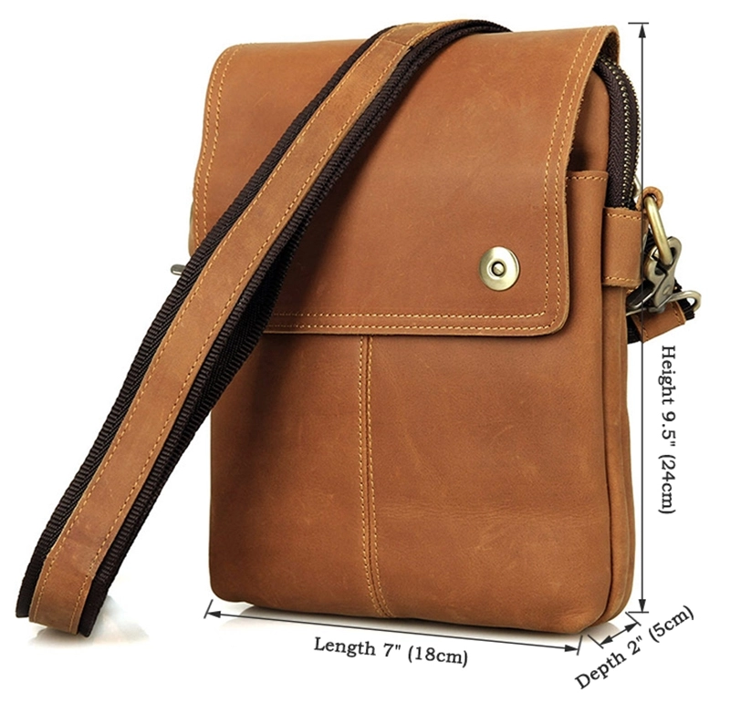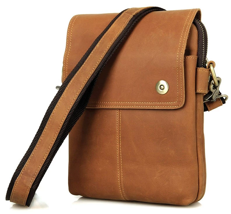 Небольшая, но функциональная мужская сумка из натуральной винтажной кожи. Цвет фурнитуры: латунь: Сумка закрывается клапаном на двух магнитах. Под клапаном расположен накладной карман. На задней внешней стороне находится отделение на молнии. Носится данный аксессуар через плечо при помощи съемного, регулируемого ремня. Подкладка выполнена из прочного текстильного материала коричневого цвета. Сумка упакована в текстильный пылезащитный чехол белого цвета.