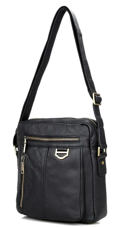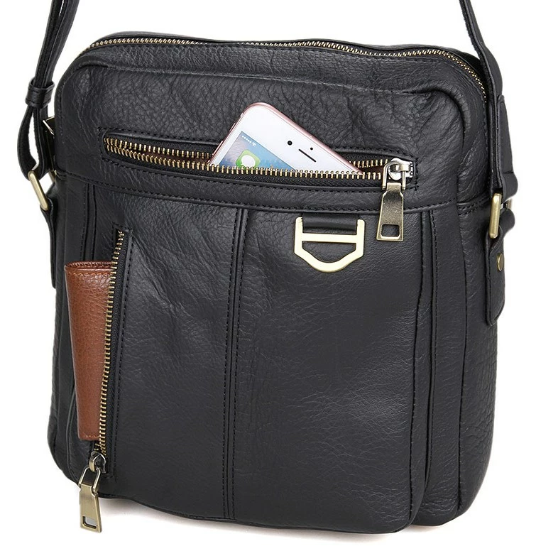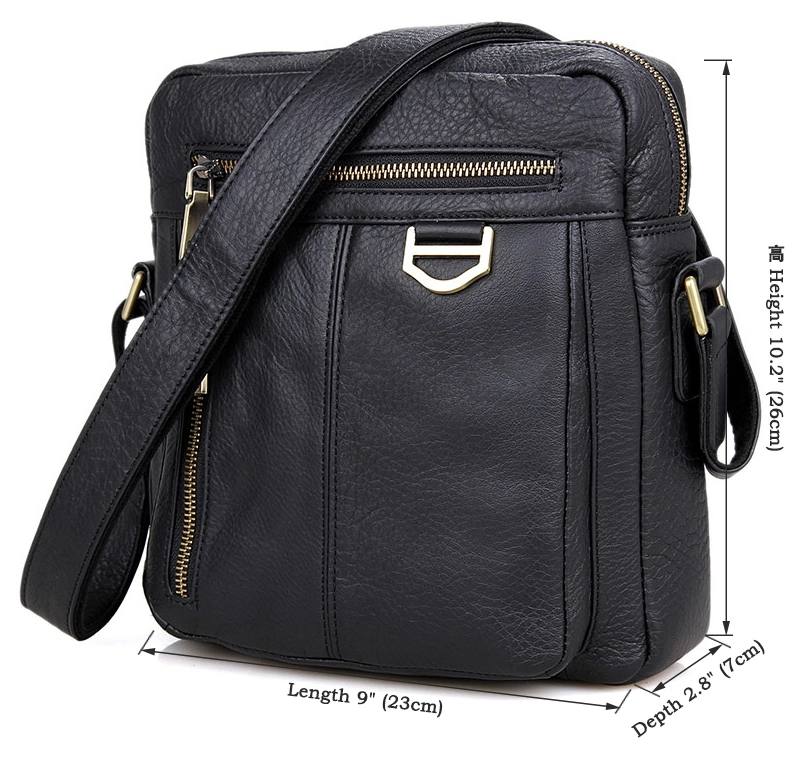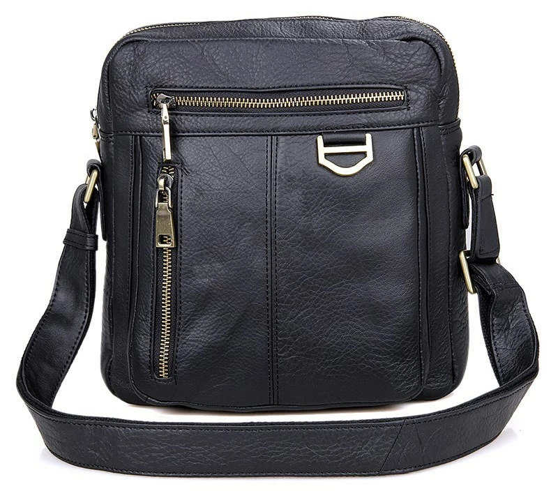 Добротная мужская сумка через плечо из натуральной кожи. Цвет фурнитуры: латунь. Сумка аккуратно прошита прочной нитью черного цвета. На лицевой стороне расположено два отделения на молнии. Еще одно отделение на молнии расположено на задней внешней стороне. Данная модель закрывается при помощи молнии. Сумка упакована в текстильный пылезащитный чехол белого цвета.