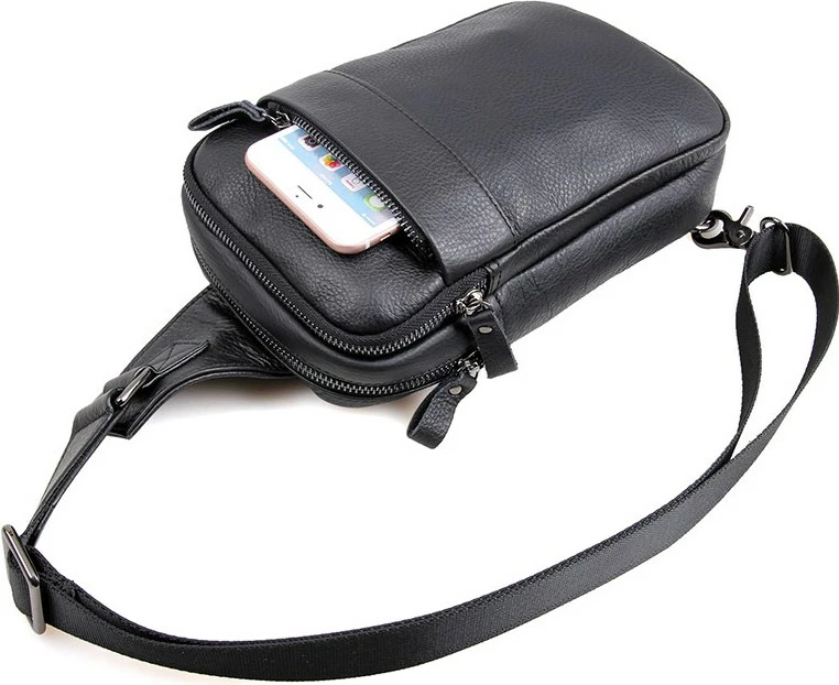 На лицевой стороне аксессуара расположен накладной карман который застегивается  змейкой, на задней внешней стенке прорезной карман на застежке.